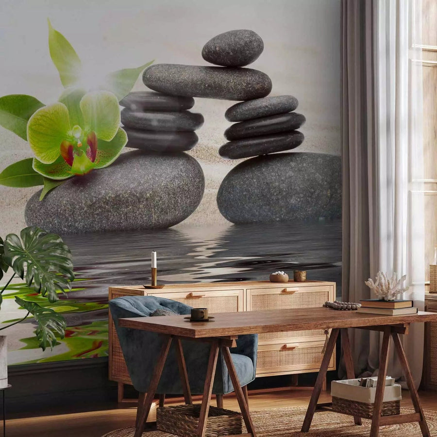 Fototapetes 61428 Zaļā orhideja un zen akmeņi