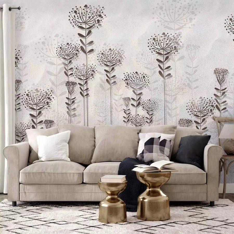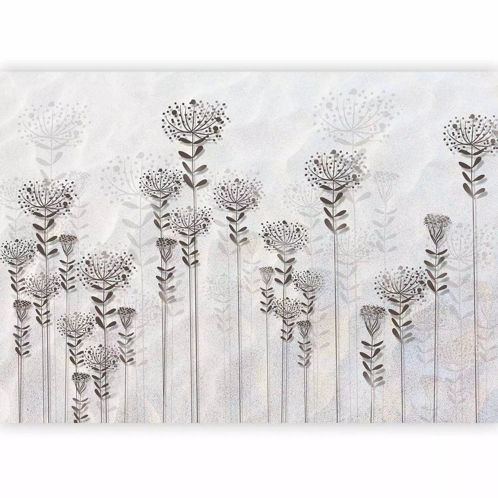Fototapetes - lielas baltas pienene ar pelēkiem ornamentiem, 64449  G-ART