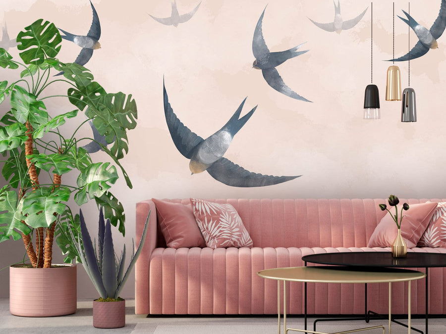 Fototapetes ar putniem - Rozā dzērves - elegants interjers G-ART