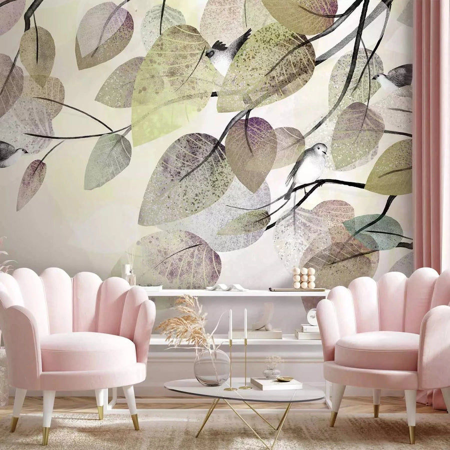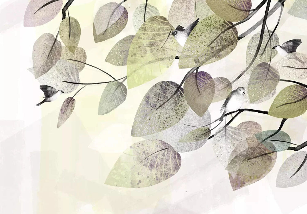 Fototapetes - Putni uz koka pelēkzaļās krāsās - dabas pieskāriens  G-ART