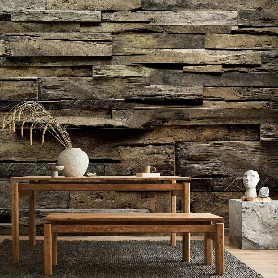 Fototapetes ar koka rakstu - Lauku māja - ideja viesistabai ar dabu G-ART