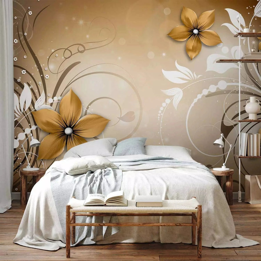 Fototapetes - ziedu motīvs uz fona ar vieglu mirdzuma efektu G-ART
