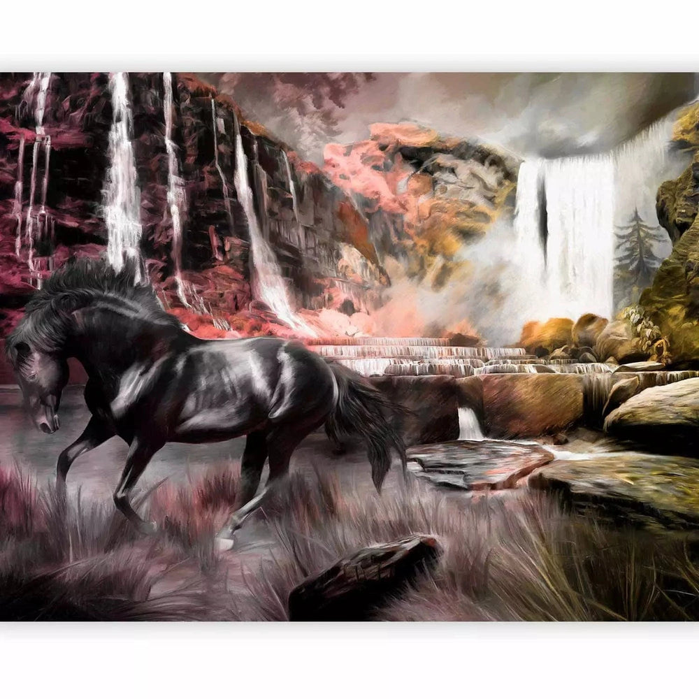 Fototapetes ar zirgu - Melns zirgs pie ūdenskrituma - pirkt G-ART