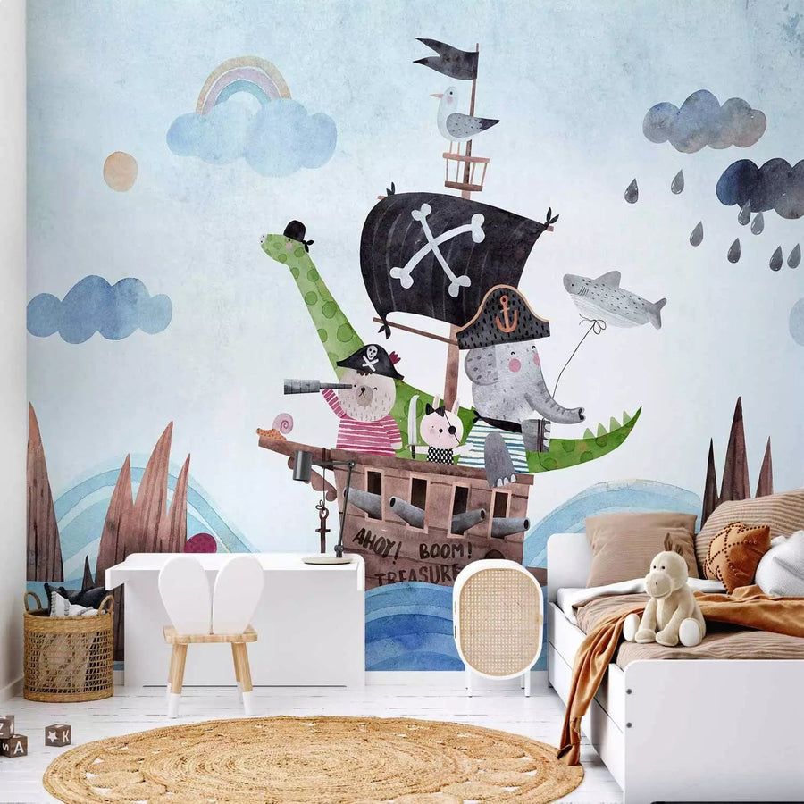 Fototapetes bērnu istabai - Pirātu kuģis ar dzīvniekiem - 142717