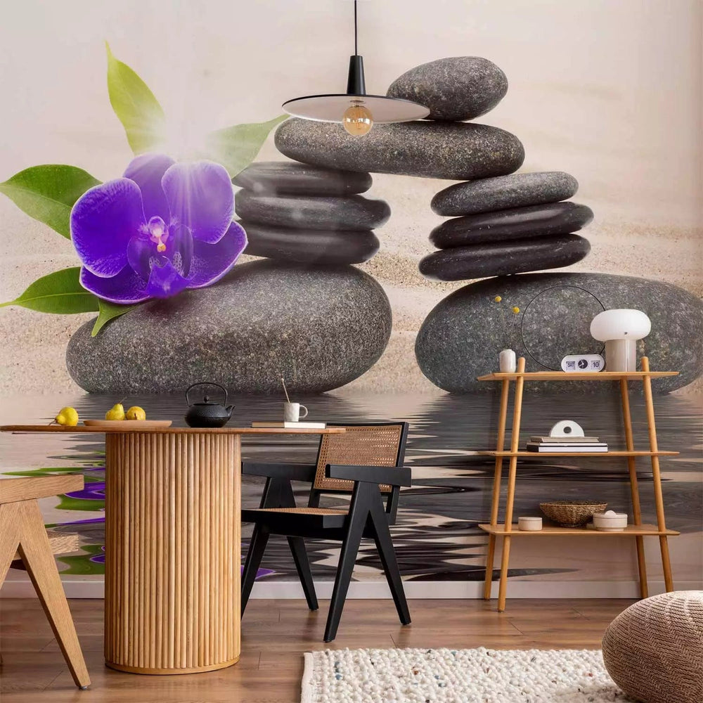 Fototapetes 61428 Zaļā orhideja un zen akmeņi