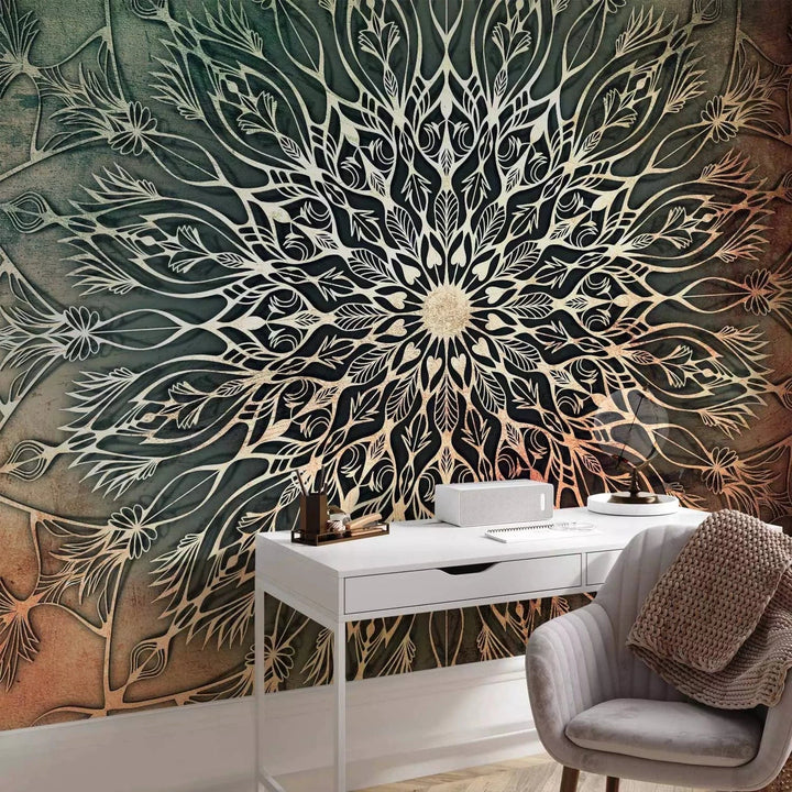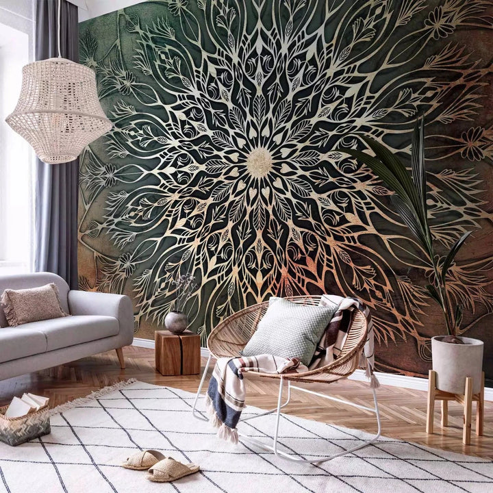 Fototapetes ar austrumu ornamentu - Mandala zaļā krāsā, 107971