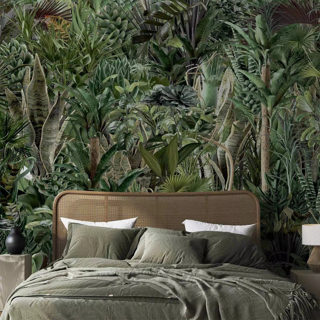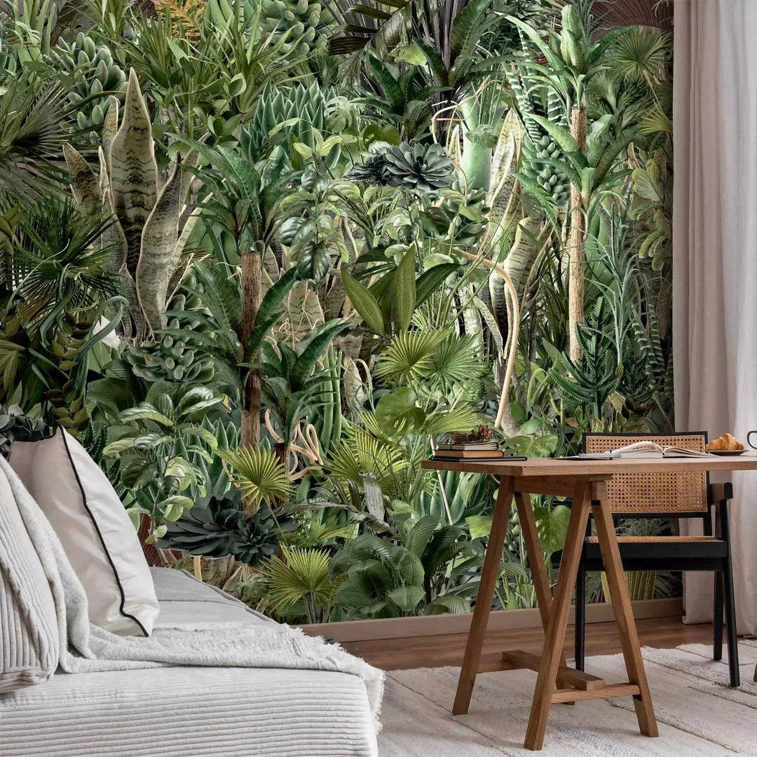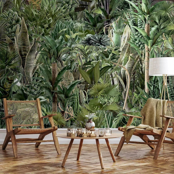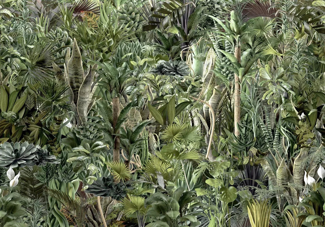 Fototapetes - Džungļu bagātība – eksotiska zaļa savvaļas ainava ar kokiem, 135224