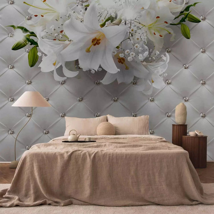 Fototapetes ar ziediem uz gaiša fona - Elegantas lilijas, 97943
