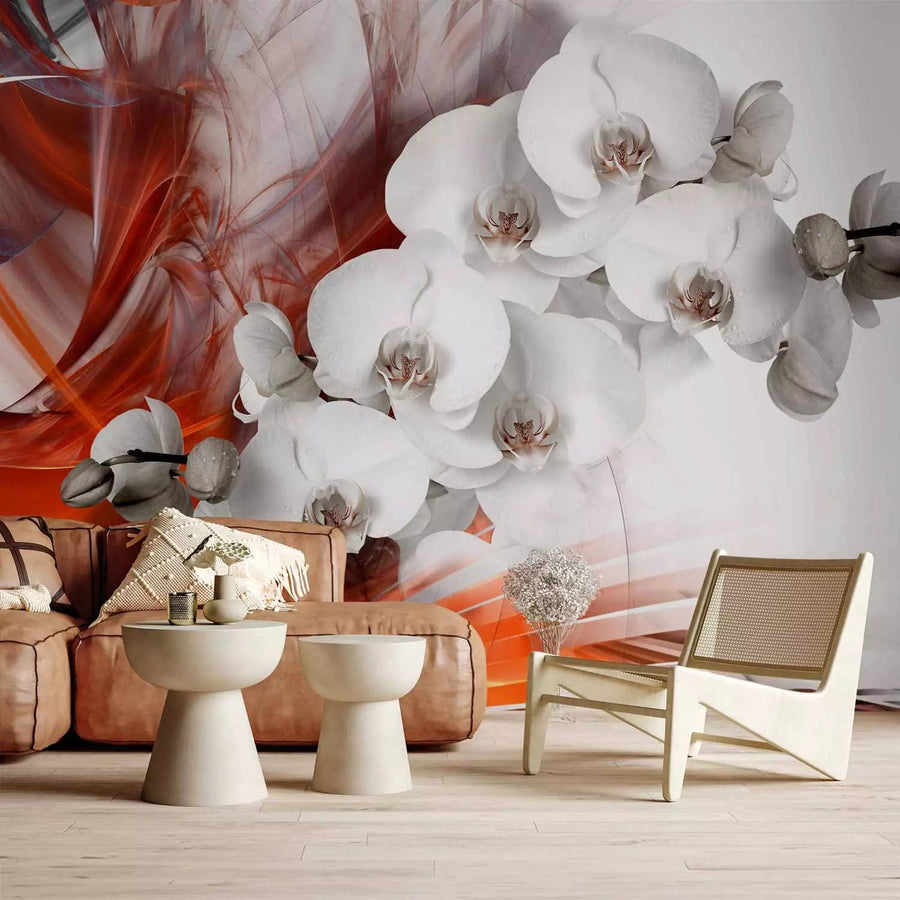 Fototapetes - baltas orhidejas un sarkanam liesmas, 61845 G-ART