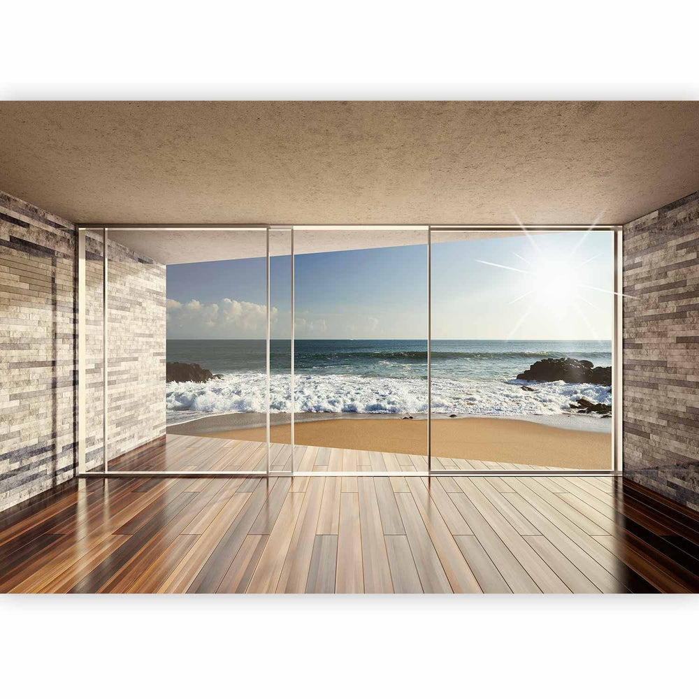 Skaistas 3d fototapetes - Logs ar skatu - smilšaina pludmale, 64120  G-ART
