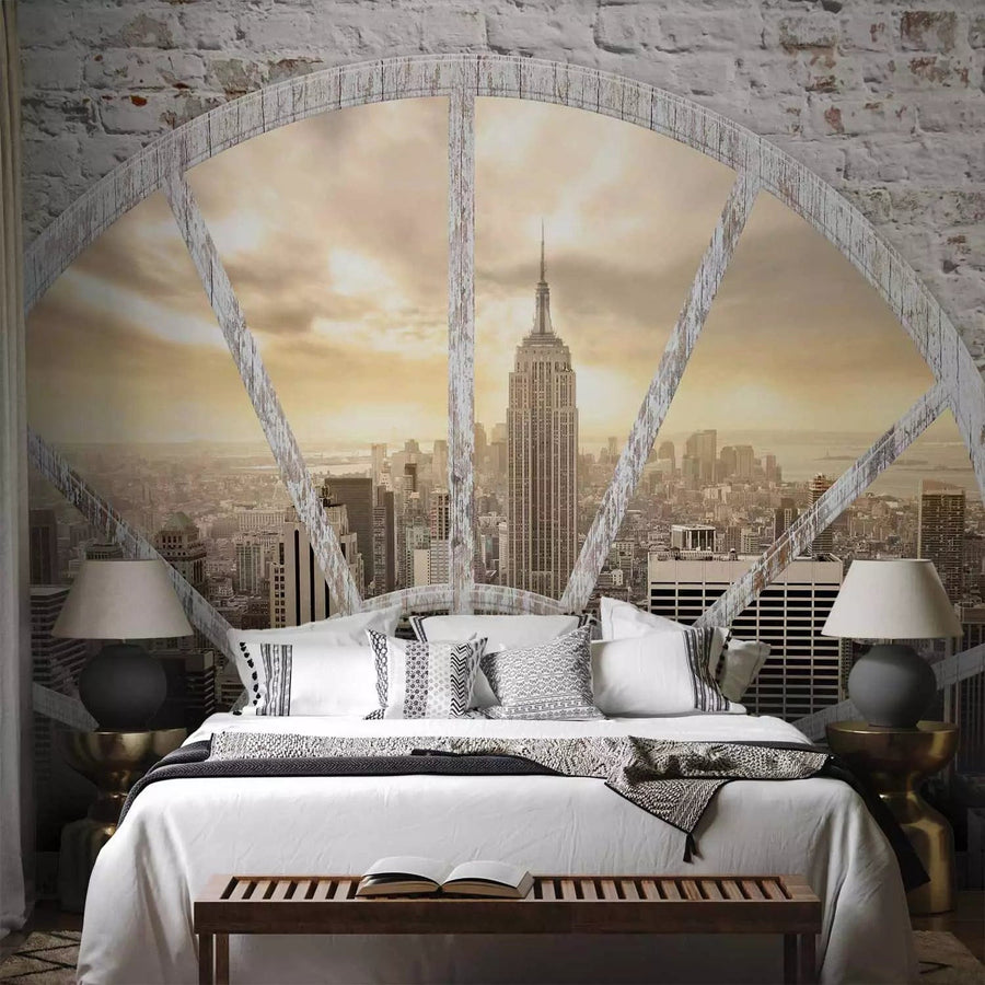 Fototapetes ar Ņujorkas skatu caur ventilatoru ķieģeļu sienā - 62313  G-ART