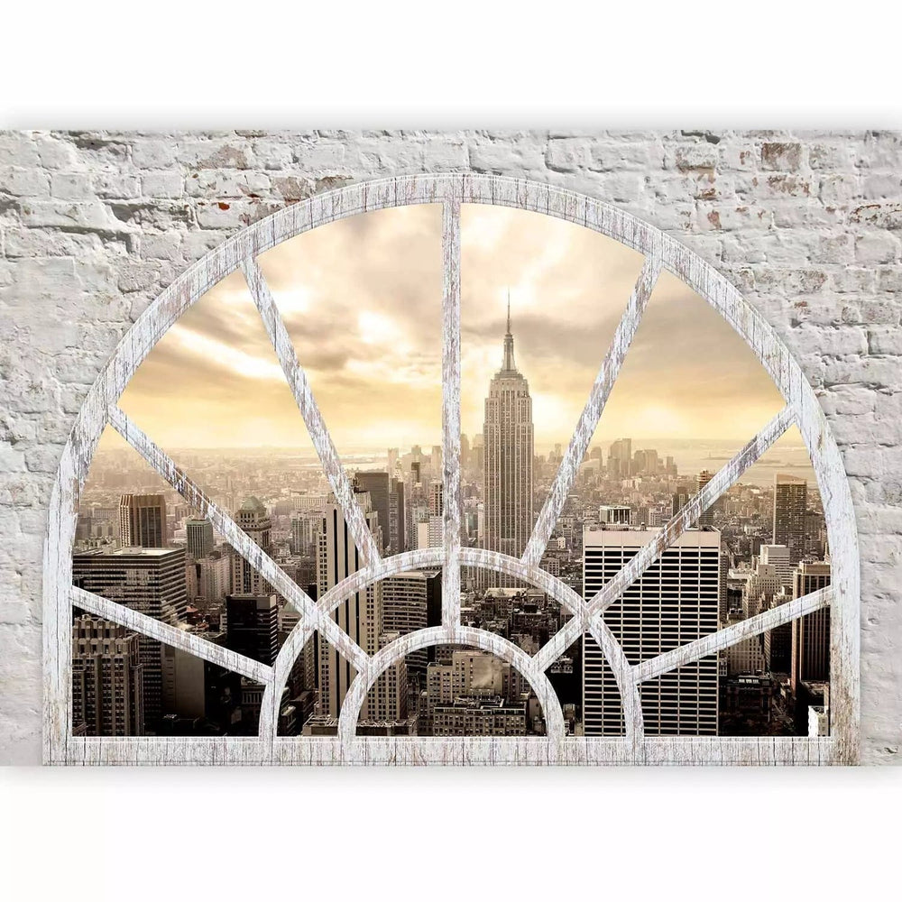 Fototapetes ar Ņujorkas skatu caur ventilatoru ķieģeļu sienā, 62313