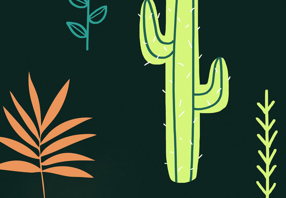 Fototapetes - Lapas un kaktusi uz zaļa fona, 143815