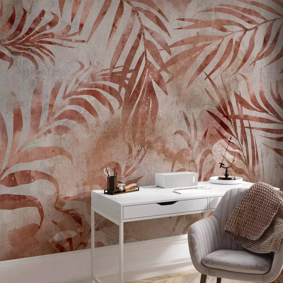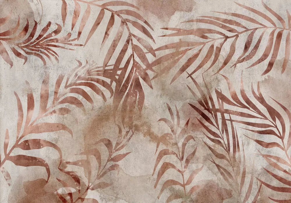Fototapetes - Lapu motīvs vara krāsā uz gaiša fona G-ART