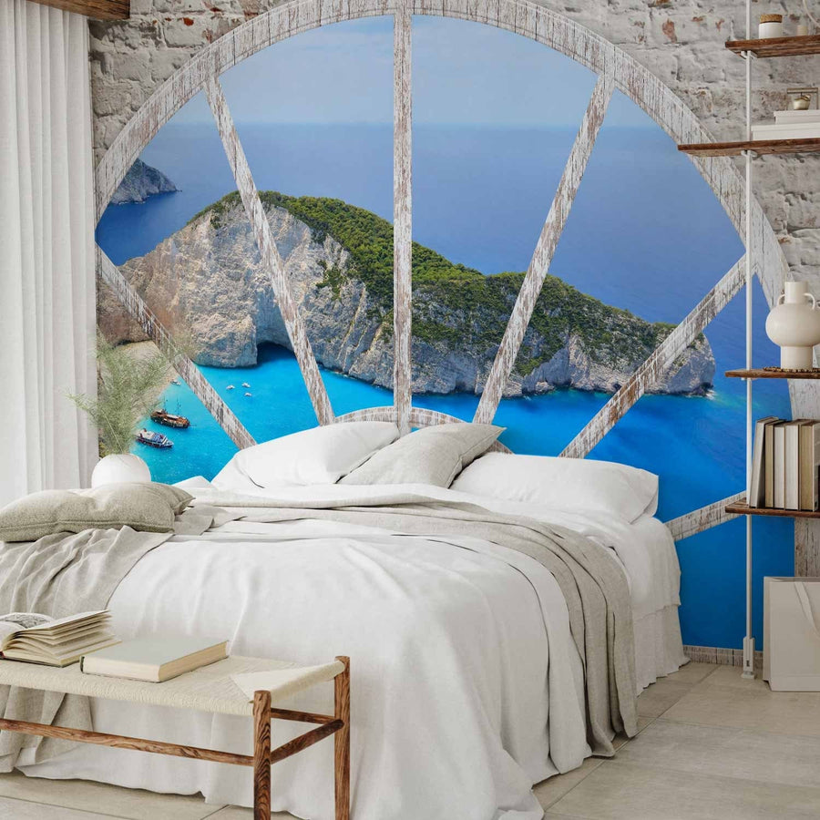 Fototapetes - Skats no loga uz salu un klinšainu līci, 62447
