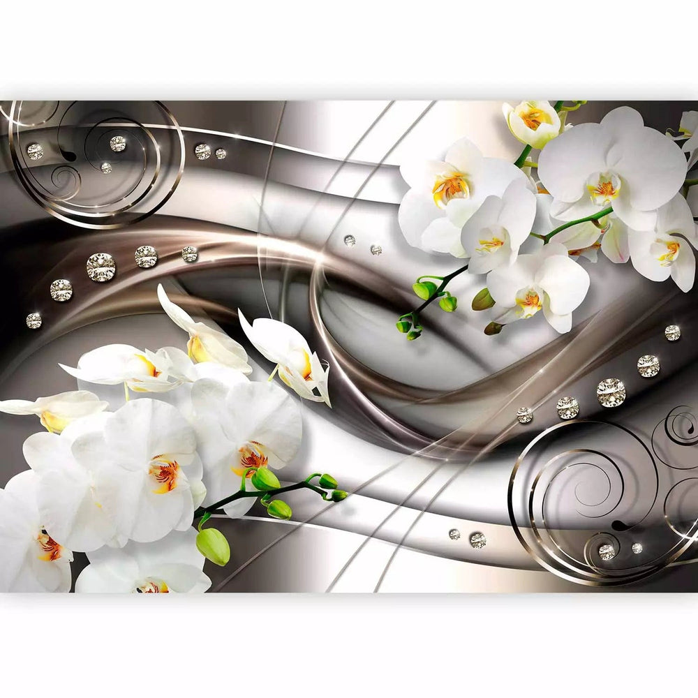 Fototapetes - Orhideja uz sudraba fona ar dimantiem, 97302 G-ART