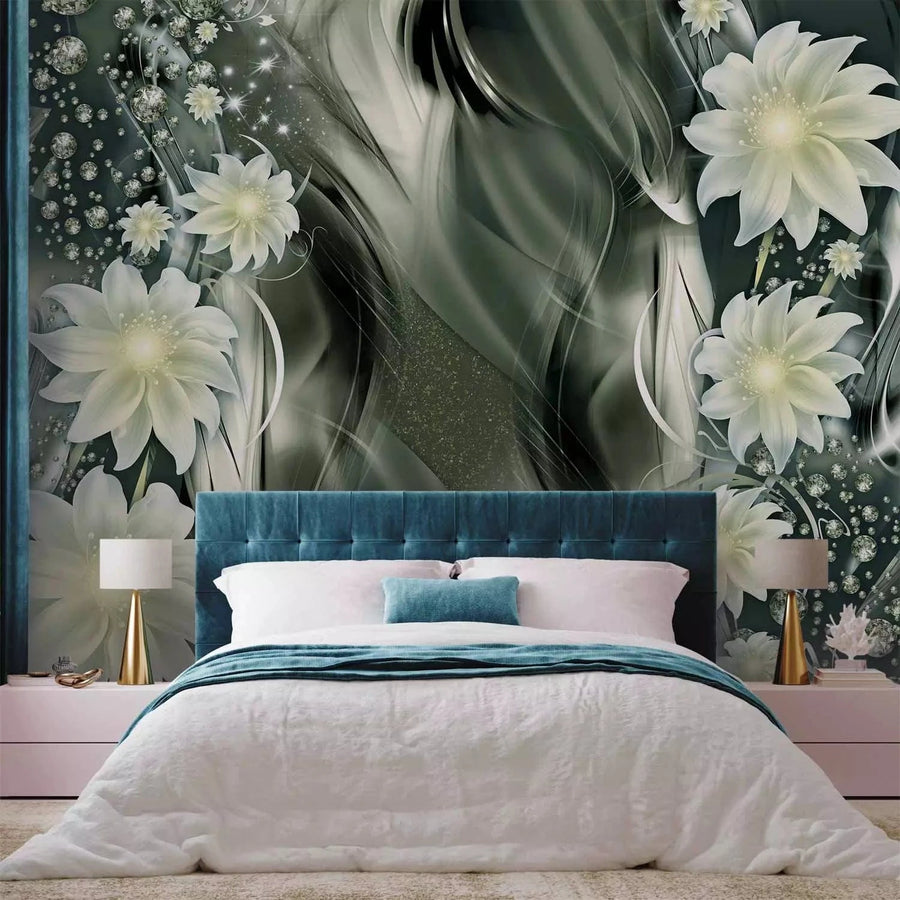 Fototapetes ar ziedu motīviem mistiski zaļos toņos - 64306  G-ART