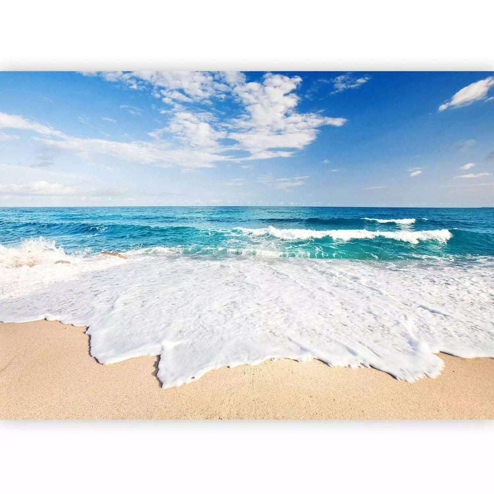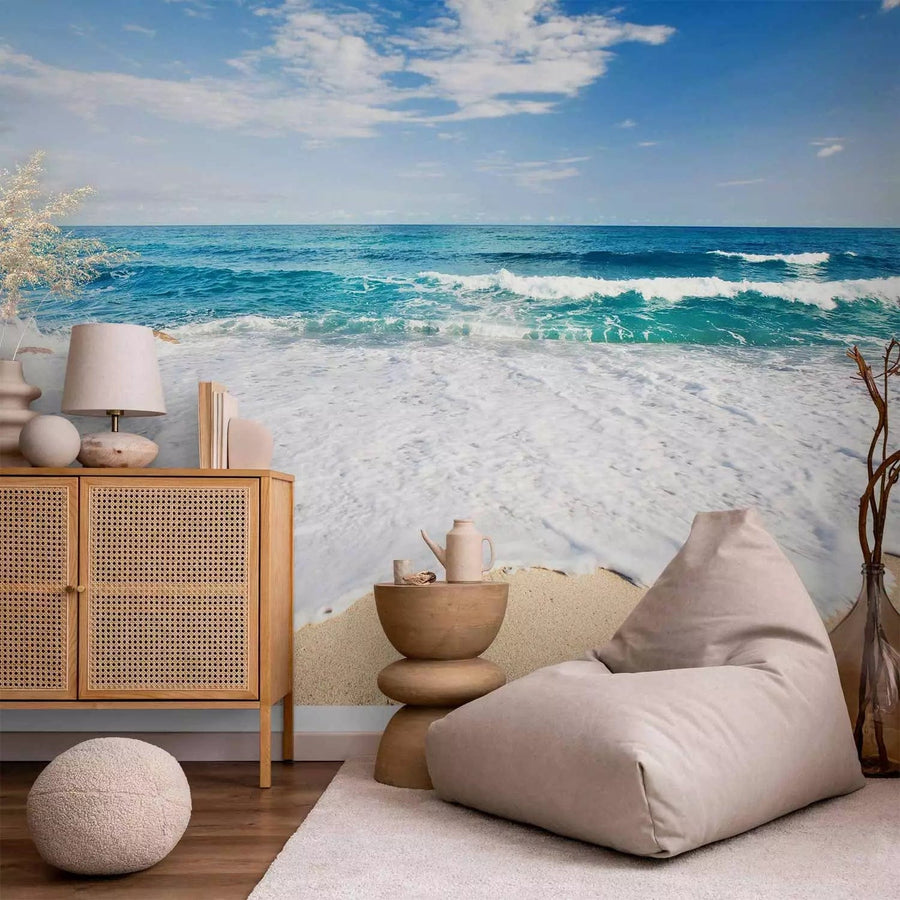 Fototapetes - Smilšainā pludmalē - Klusas jūras ainava ar viļņiem G-ART