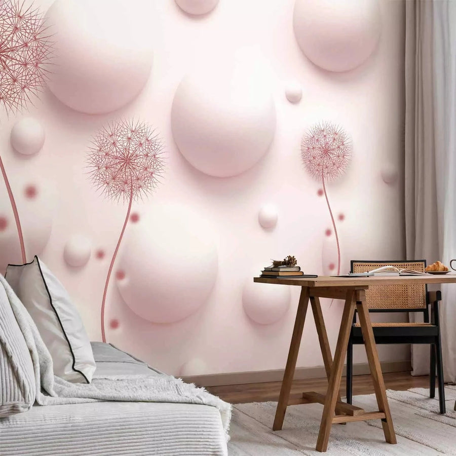 3D fototapetes - Abstrakcija ar ziedu motīvu rozā krāsā - interjerā Tapetenshop.lv
