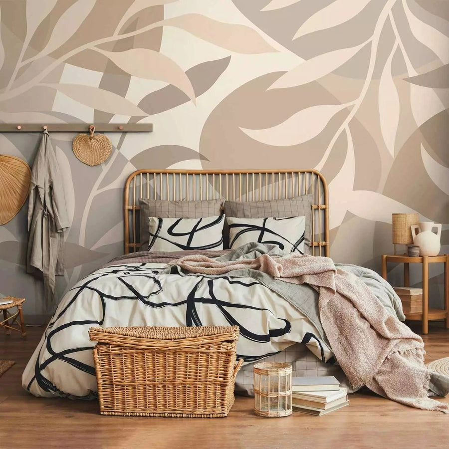 Fototapetes - Dabiskie toņi - smilškrāsas lapas ilustratīvā stilā, 163102