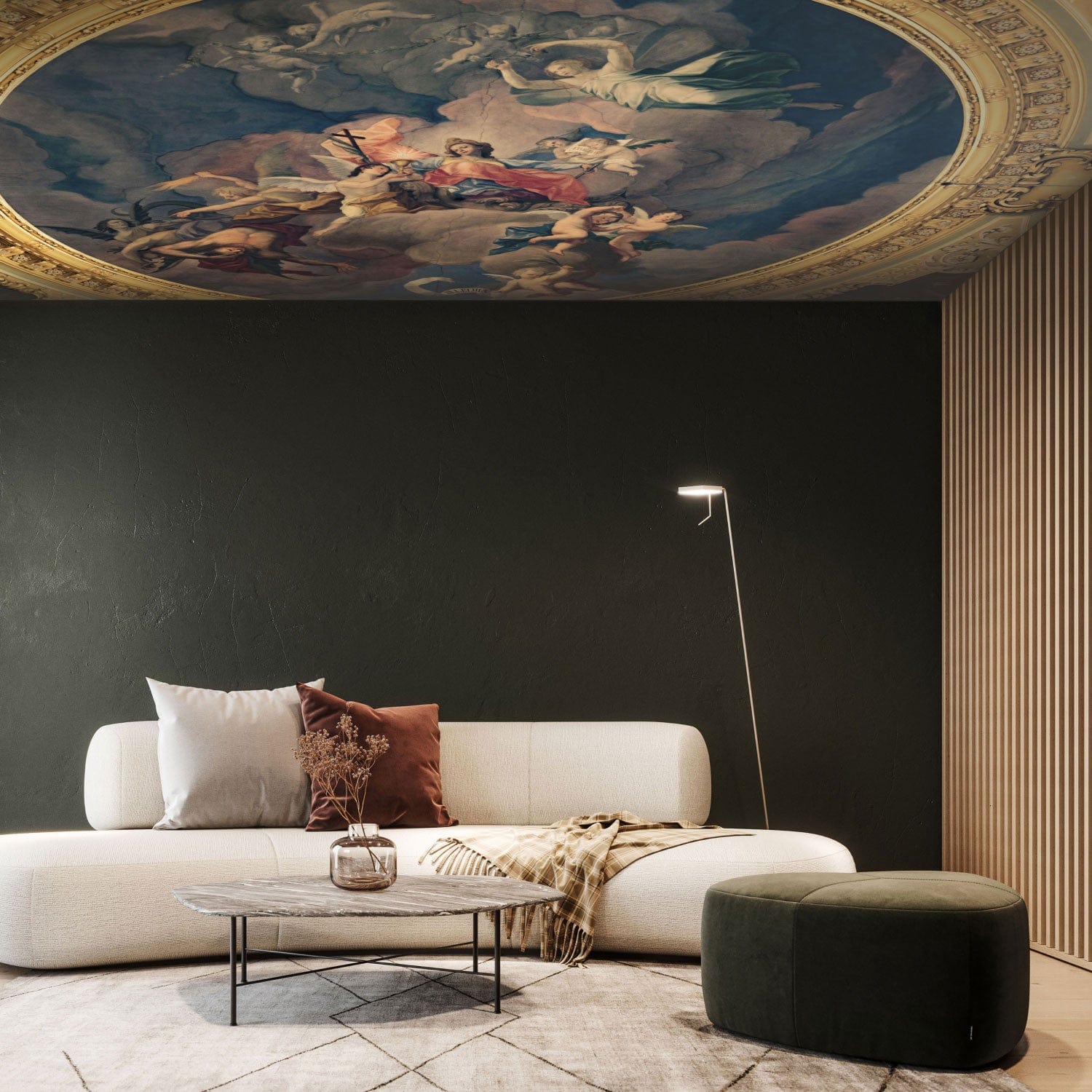 Fototapetes griestiem – freskas imitācija ar elementiem zeltā krāsā, 159926