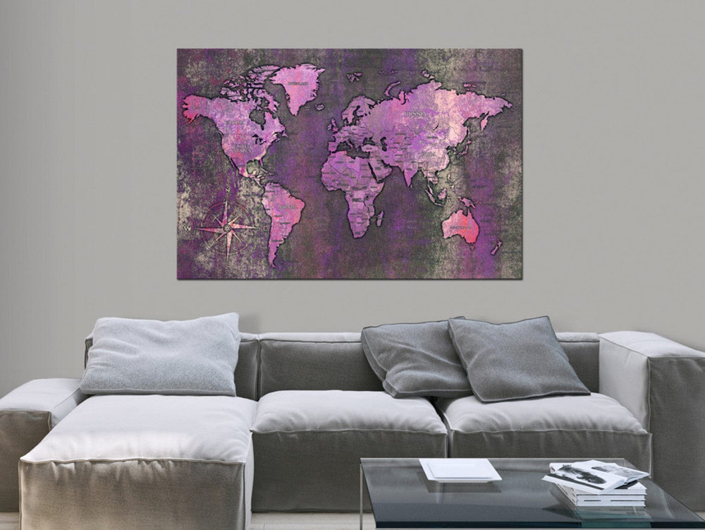 Glezna ar pasaules karti violētos toņos - Ametista karte, 91912 (x1) G-ART.