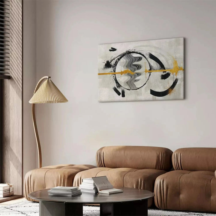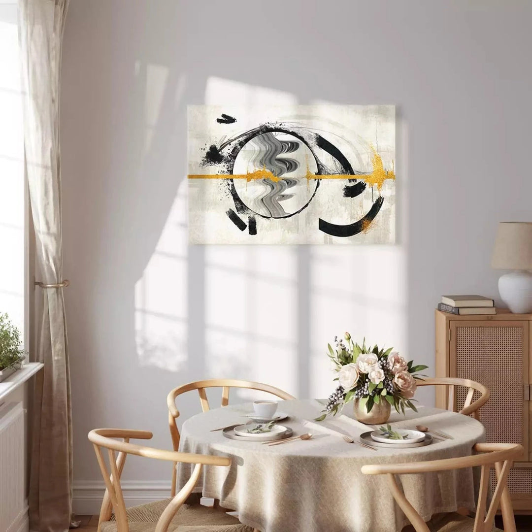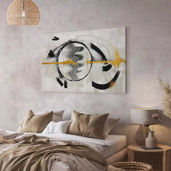 Kanva - abstrakcija ar zelta līniju melnā aplī, (x 1), 134862