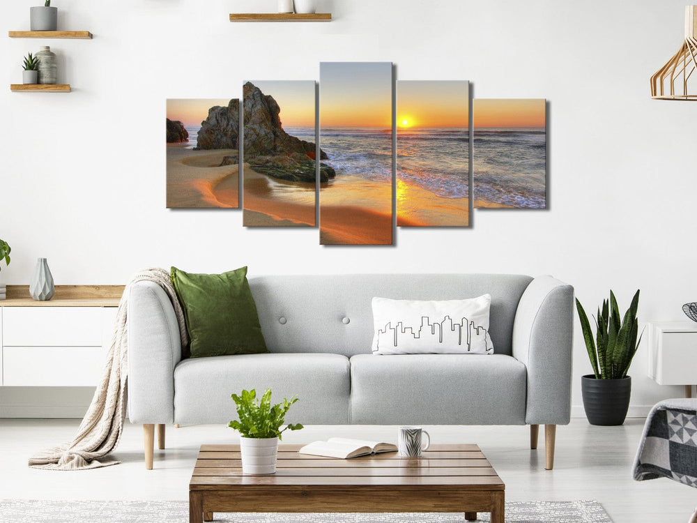 Kanva - Saulriets – jūras ainava siltos saules staros, (x 1) - 143782 G-ART