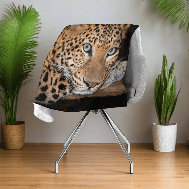 Flīsa pleds ar leopardu uz melna fona - Leoparda skatiens