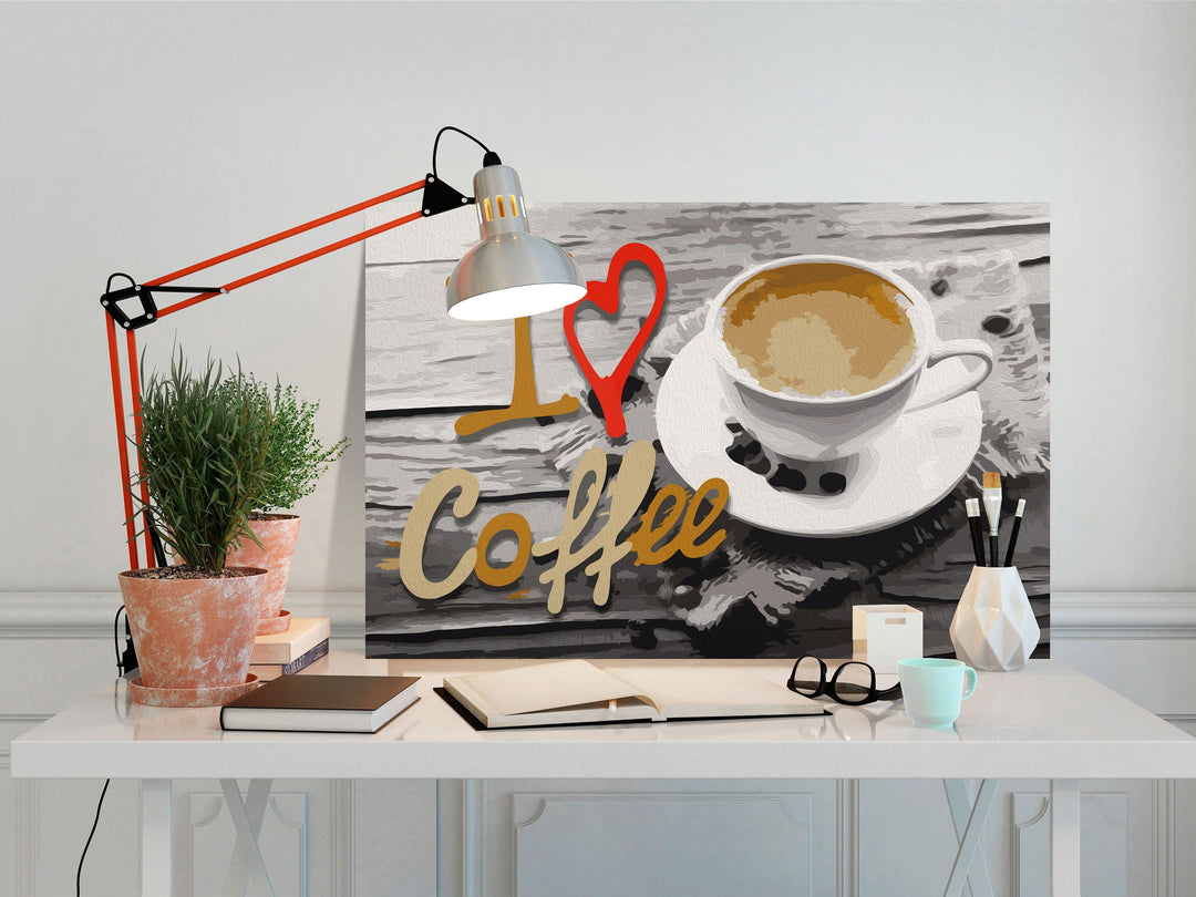 Kanva uz audekla "izkrāso pēc cipariem" - Es mīlu kafiju 50x40 cm