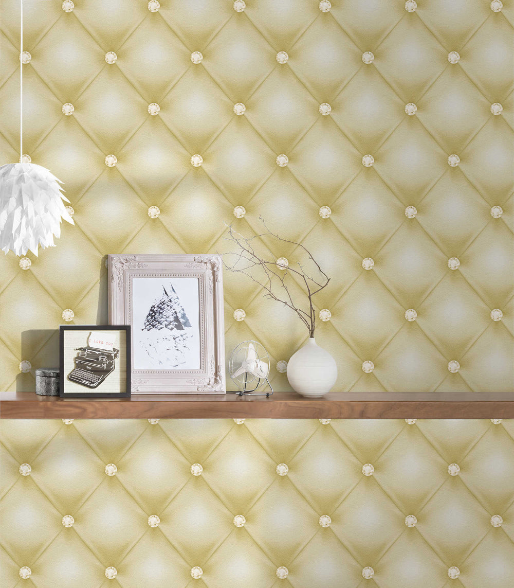 Grafiskas tapetes ar 3D rakstu zaļā un zeltā krāsā, 1363541