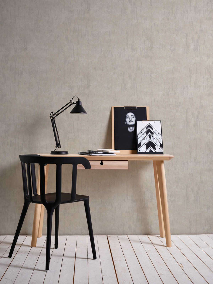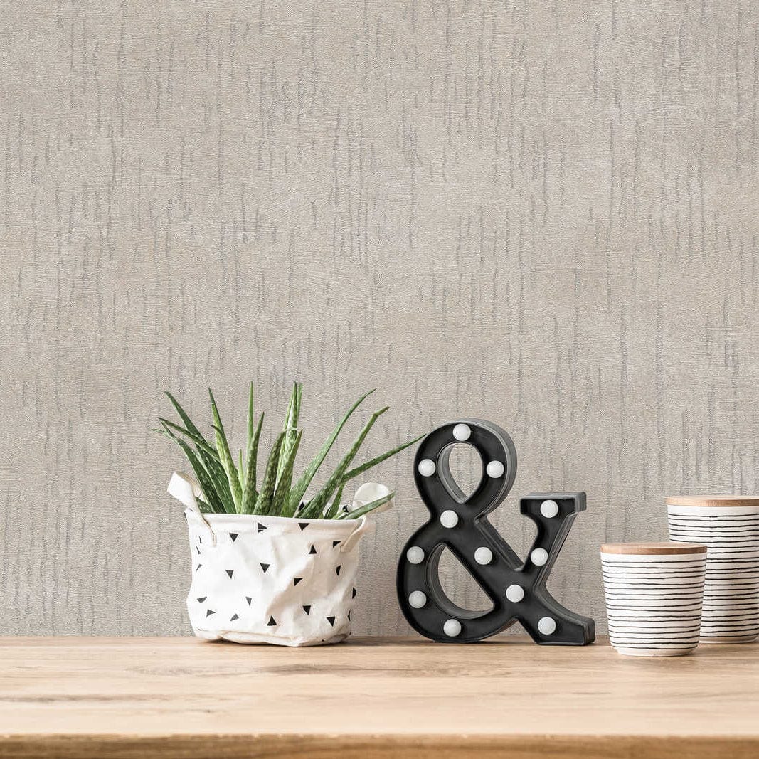 Spīdīgas teksturētas tapetes ar vertikālu rakstu – bēšas, 1352047