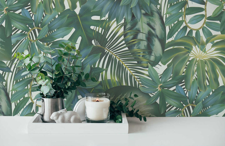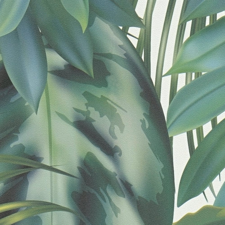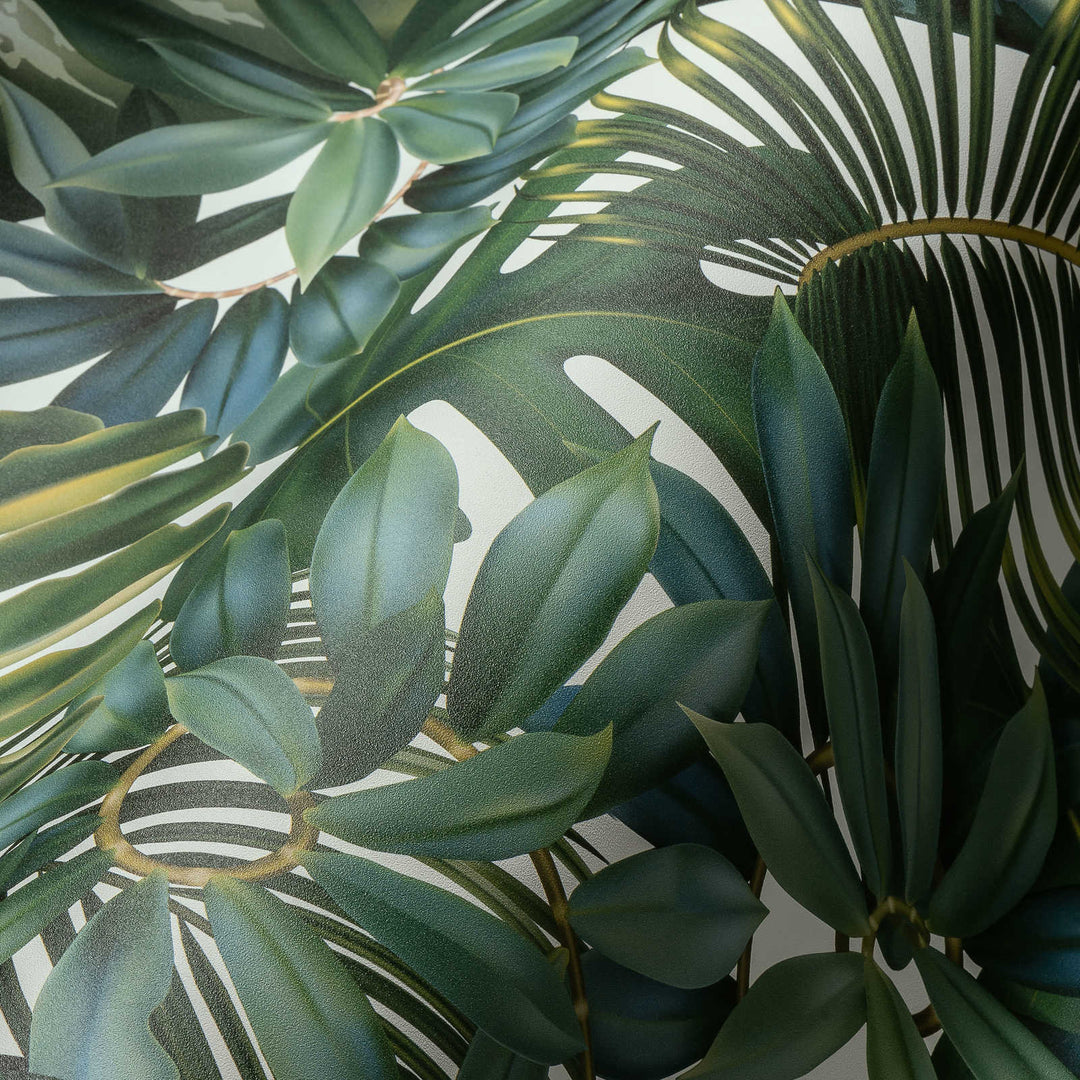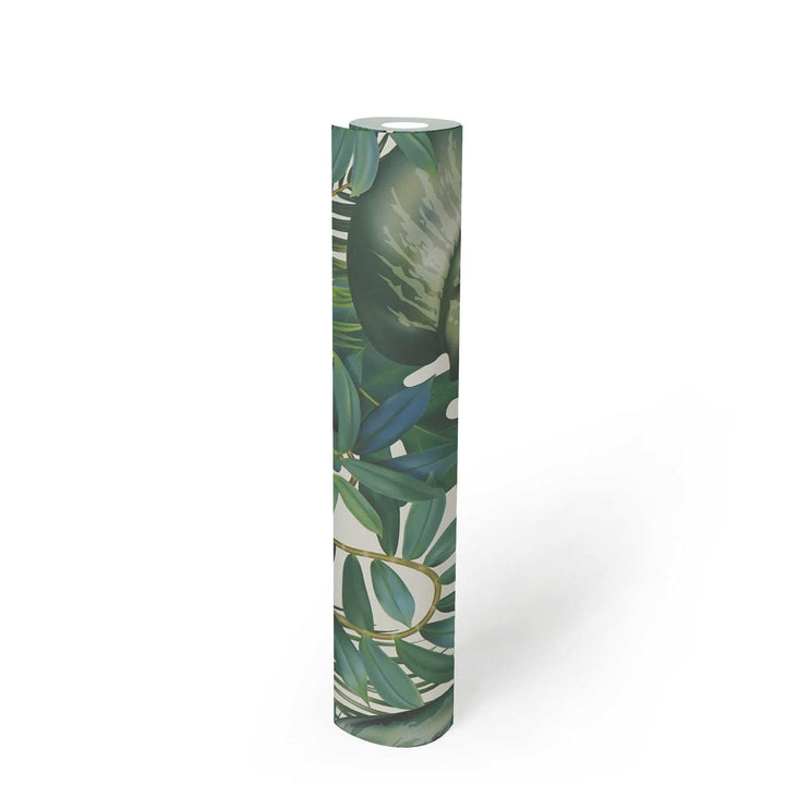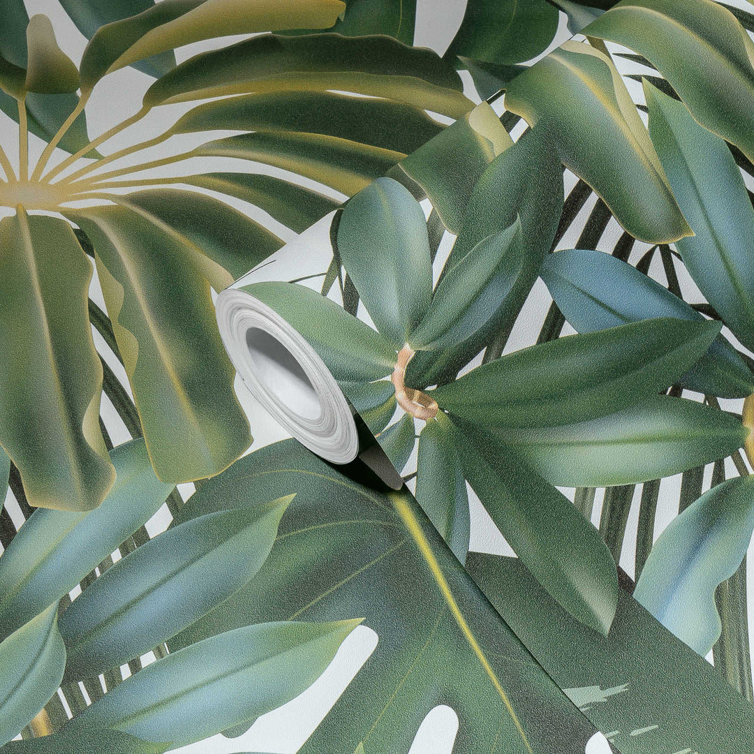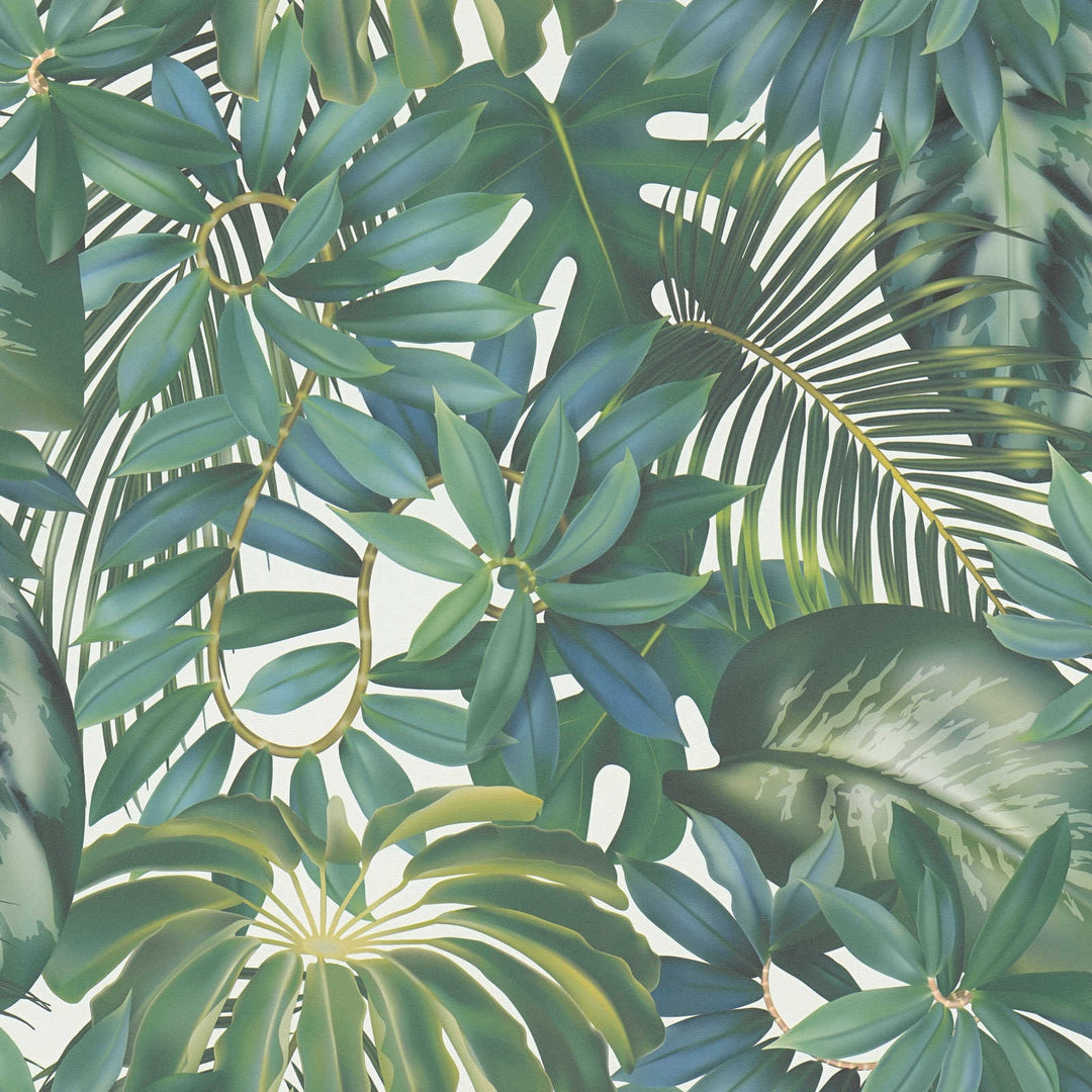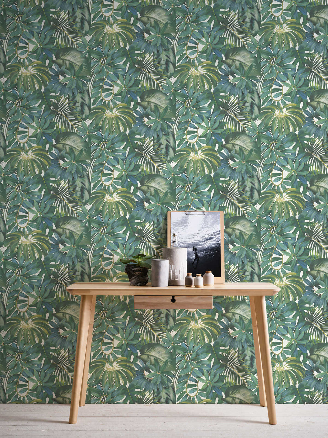 Tapetes ar džungļiem un tropiskam lapām, zaļā krāsā, 1364201