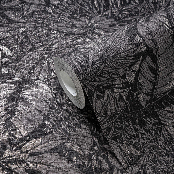 Tapetes ar palmu lapu rakstu melnā krāsā, 1404526