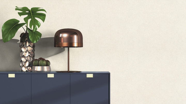 Izsmalcināti apstrādāts raupjais apmetums gaiši bēšā krāsā piešķir telpai jaunu elpu, atspoguļojot iedzīvotāja radošumu. Apmetums bez piepūles tiek uzklāts augstas kvalitātes smalki teksturēta un reljefaina flizelīna tapešu veidā.