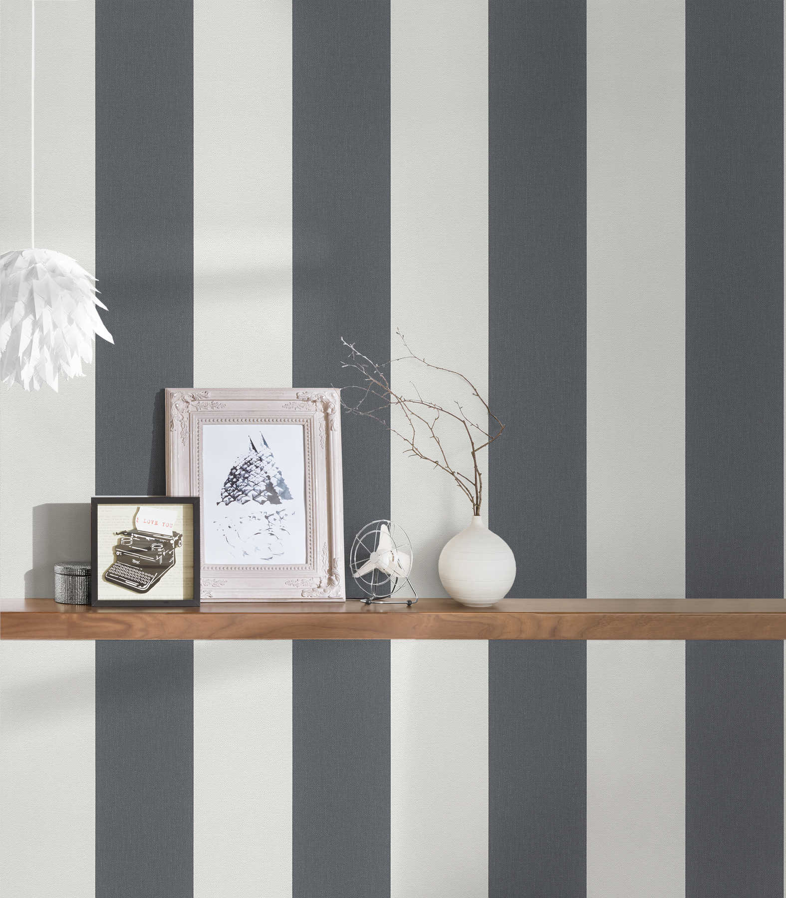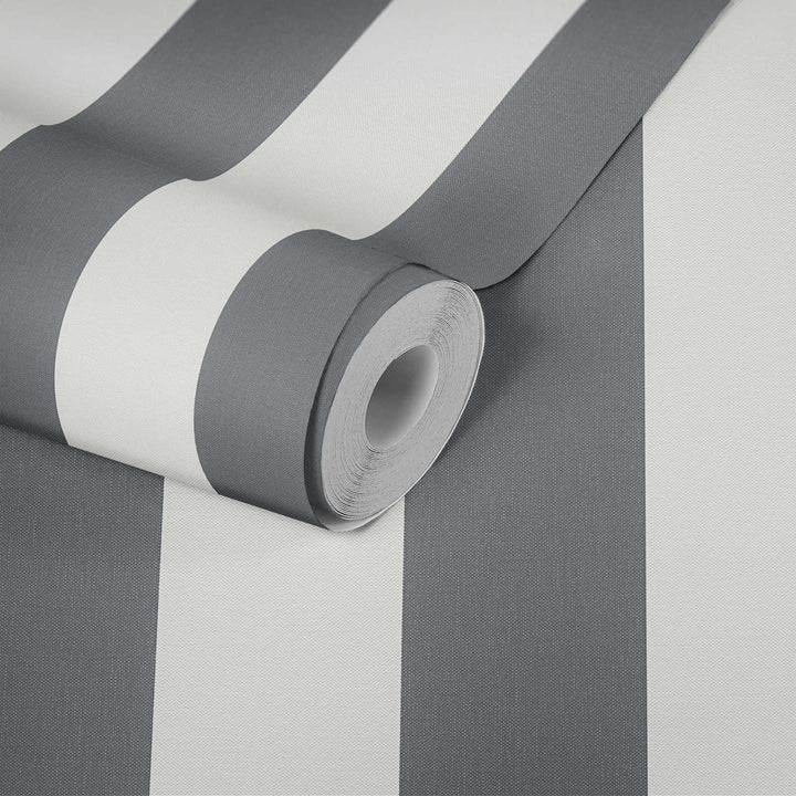 Svītrainas tapetes ar lina struktūru - pelēka, balta - 535552