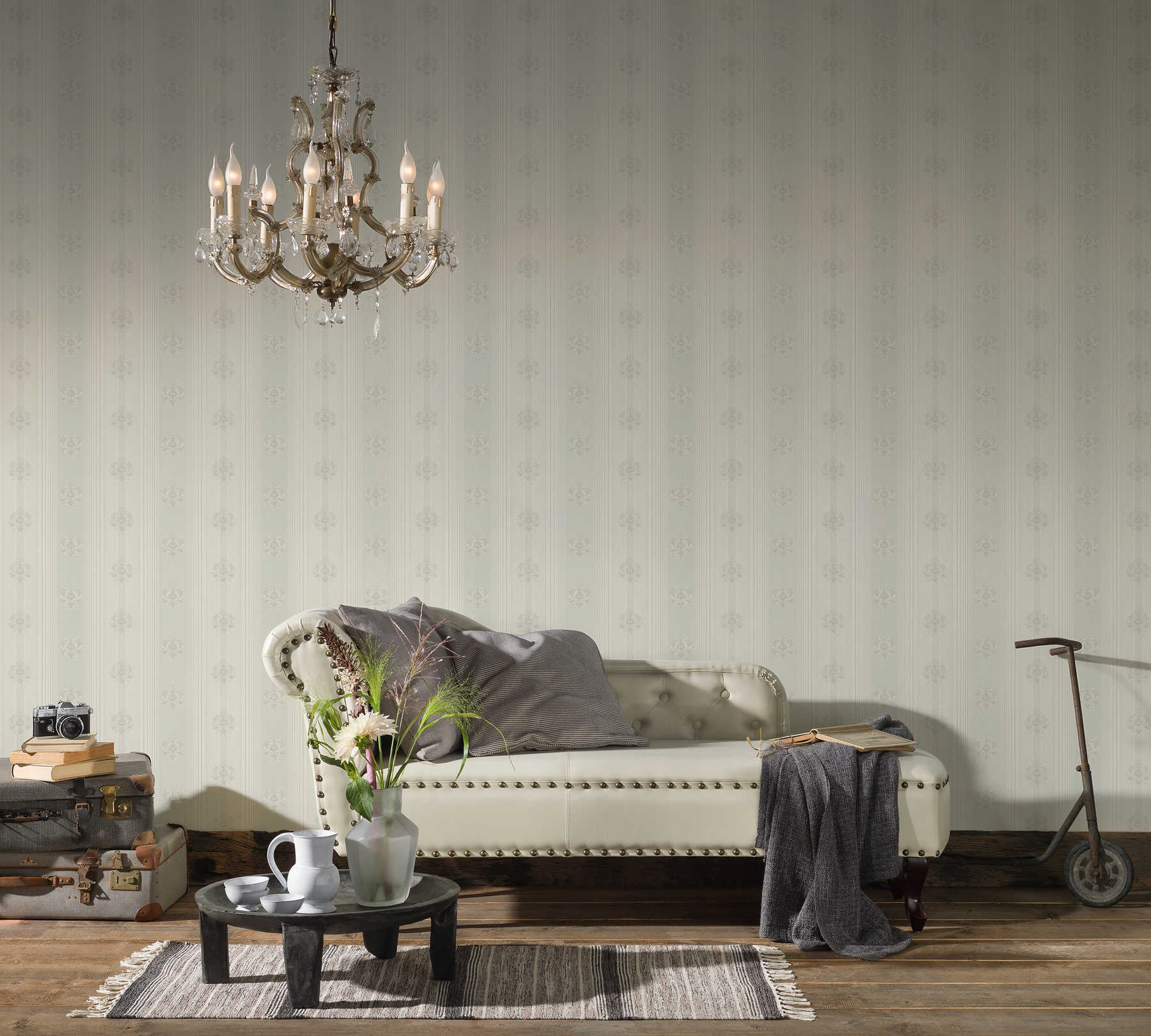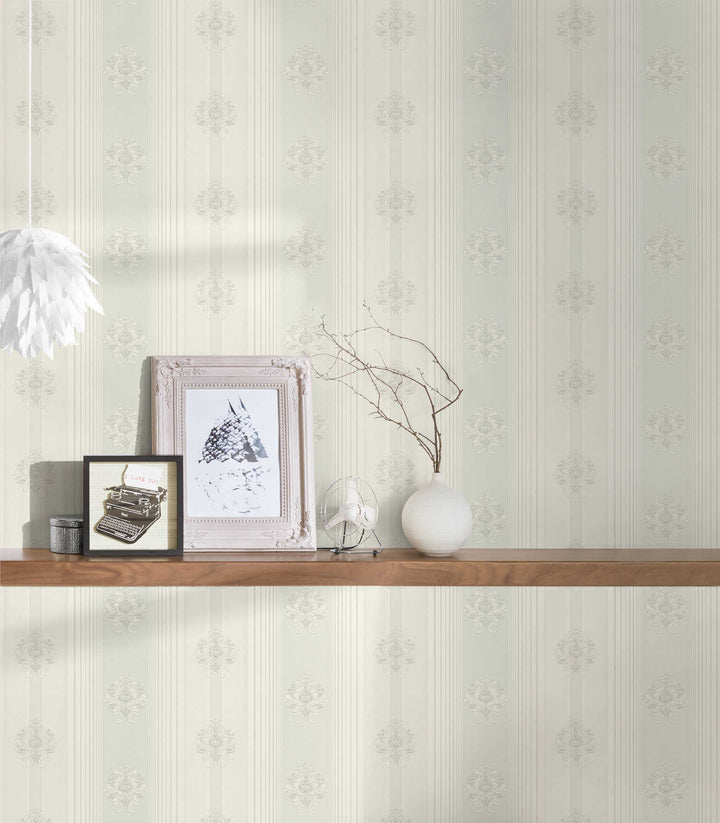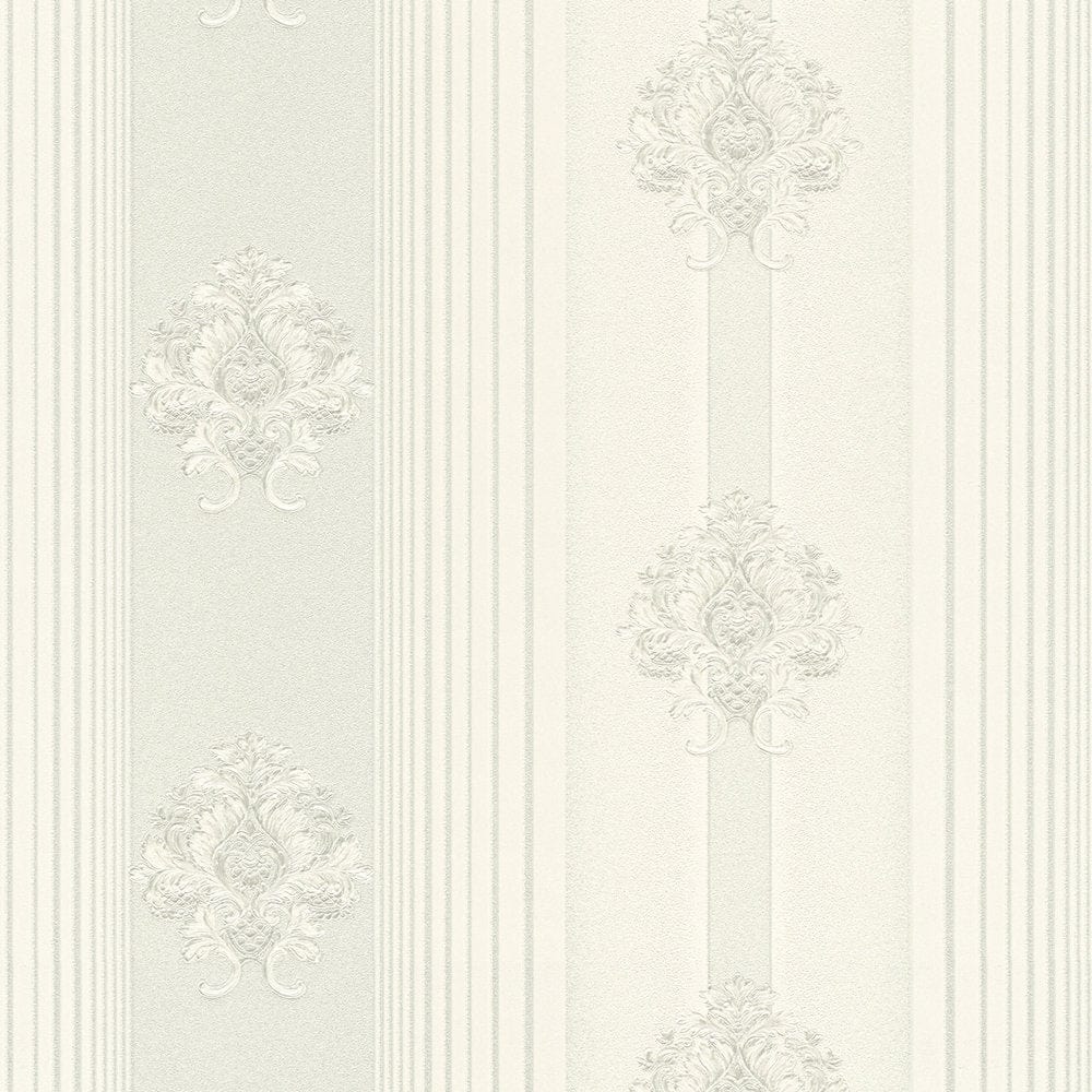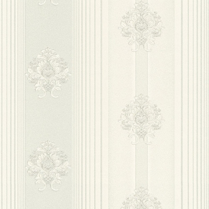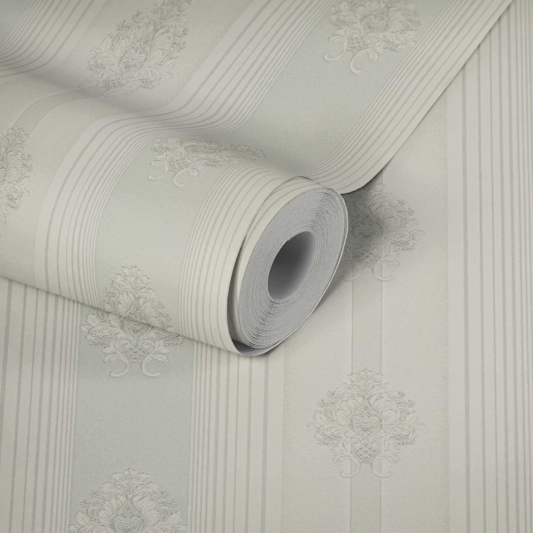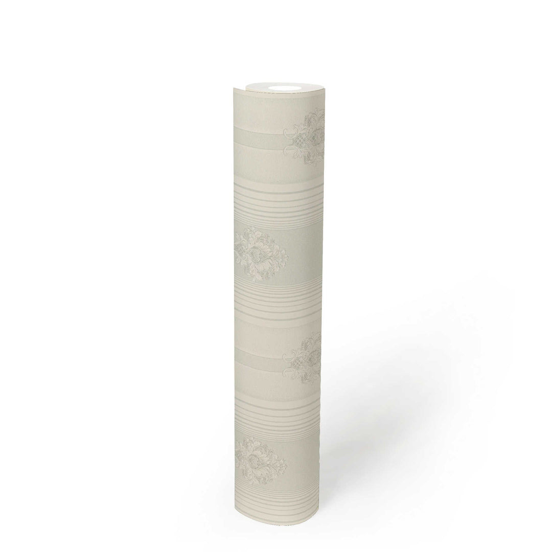 Klasiskā stila svītrainas ornamentālās tapetes, gaiši pelēkas, 1206133