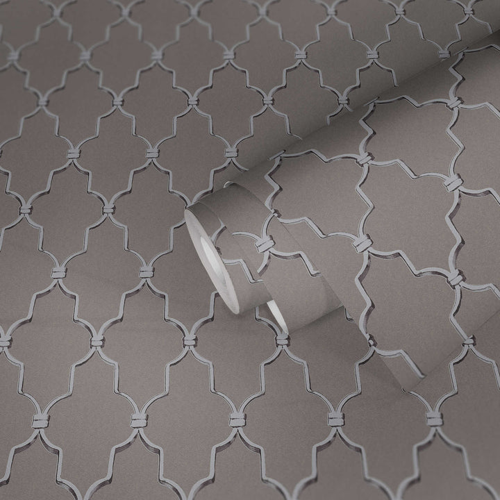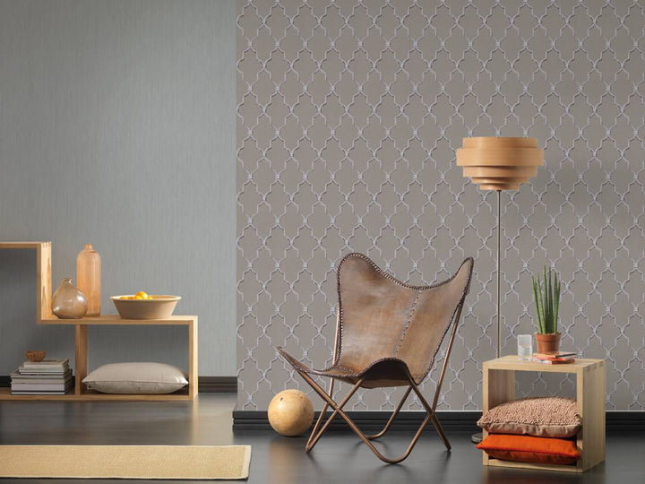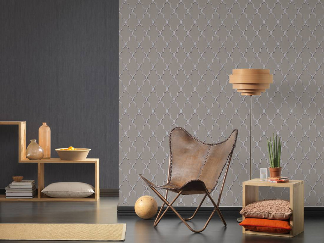 Art Deco retro stila rakstainas tapetes - brūnā, pelēkā krāsā, 1310736