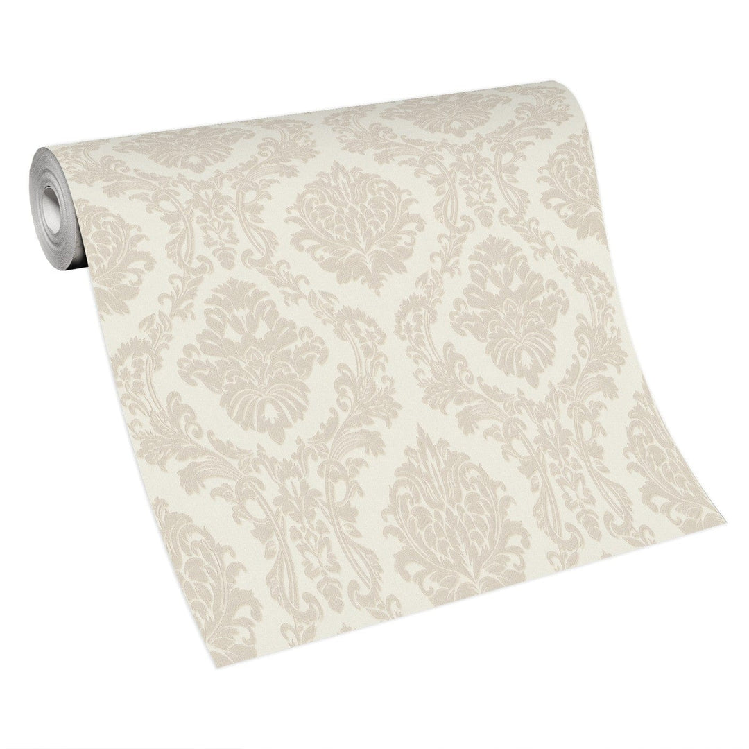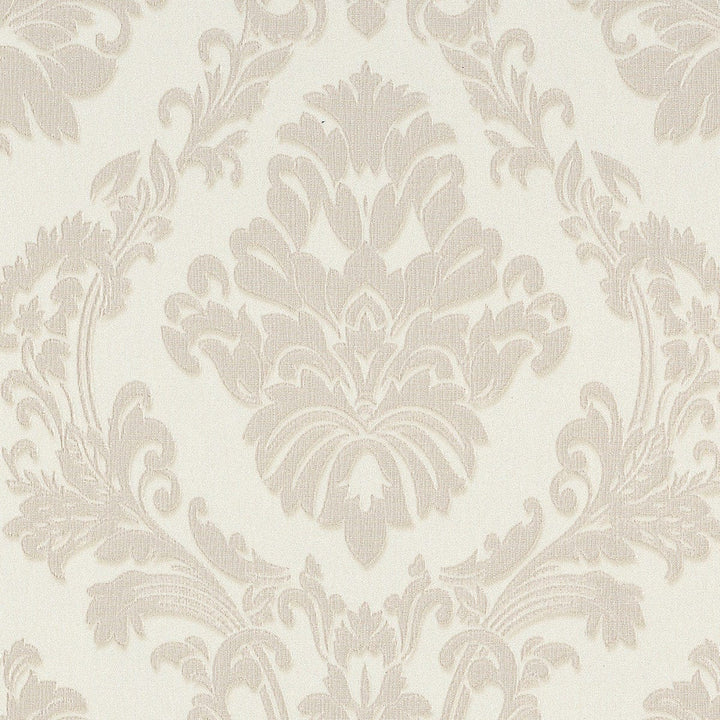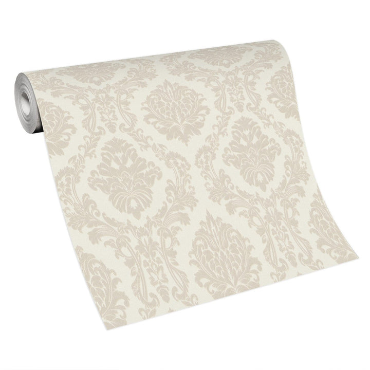 Tapetes ar klasisku damaskas motīvu un satīna izskatu, krēmkrāsā, 3731302, 🚀ātra piegāde
