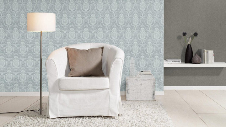 Tapetes ar smalku izšuvumu un baroka ornamentu, zilā krāsā, RASCH, 2132716