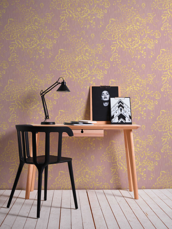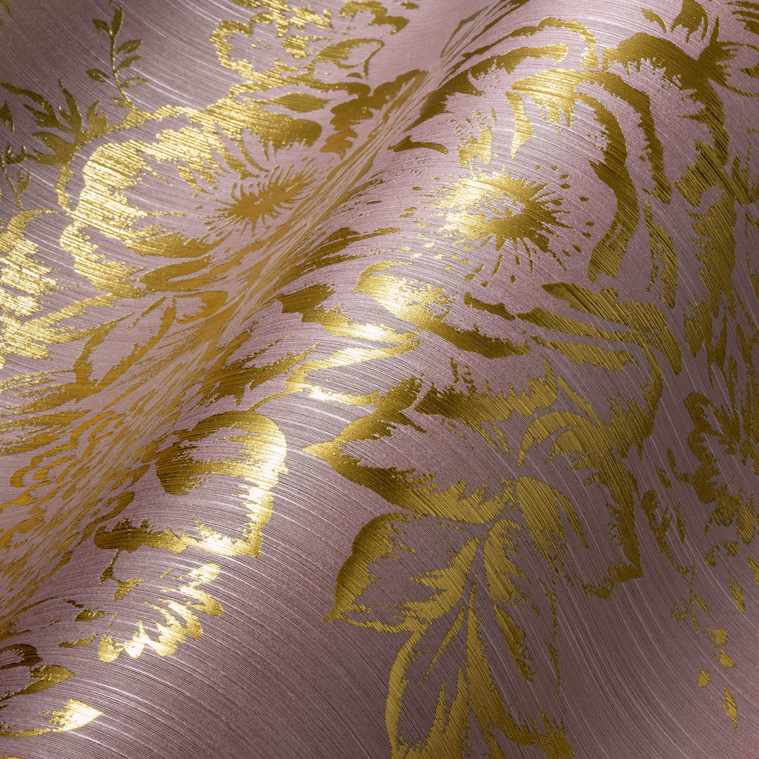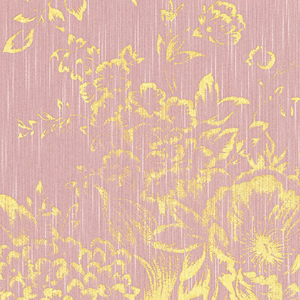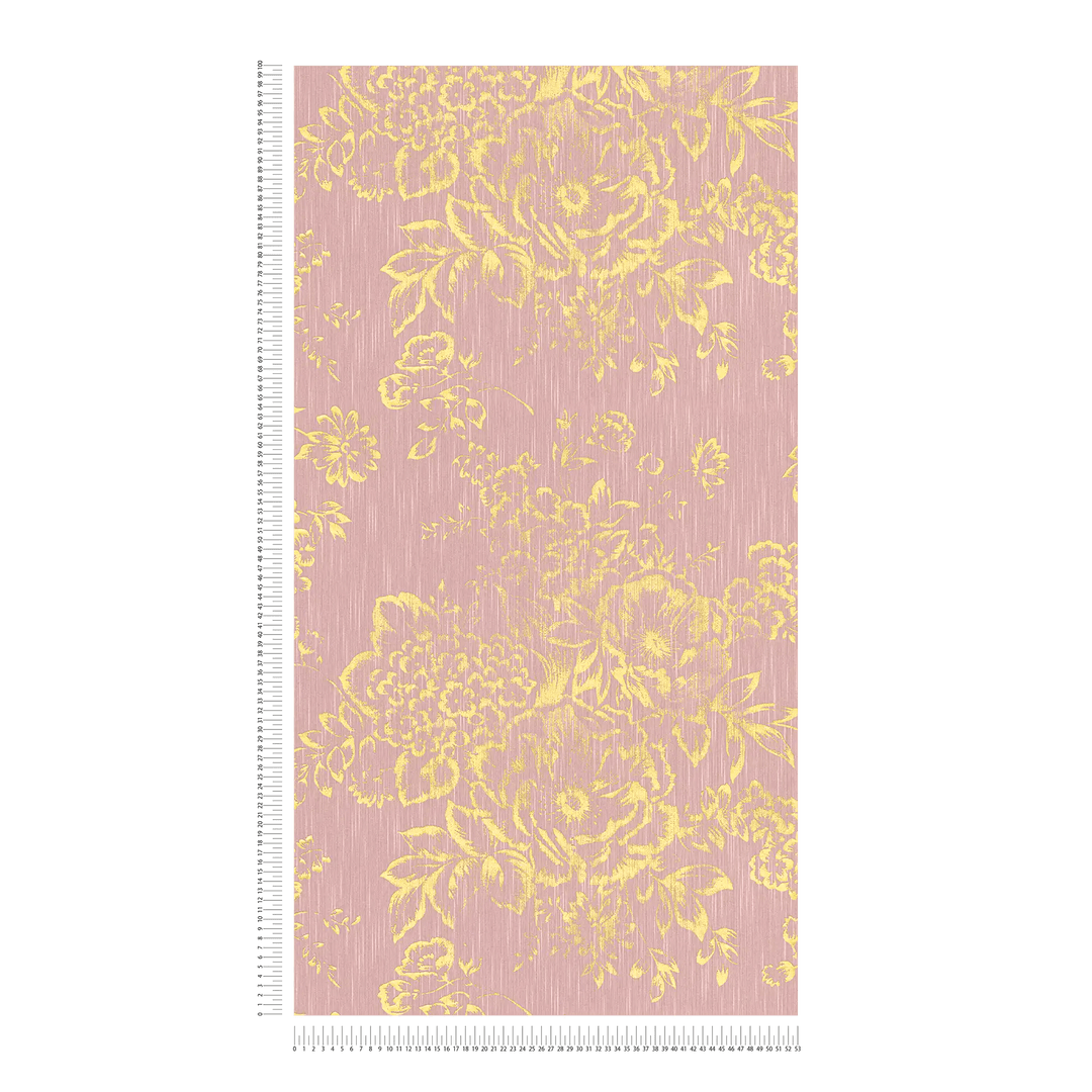 * Tekstila tapetes ar zelta ziedu rakstu - zelta, rozā - 1126617
