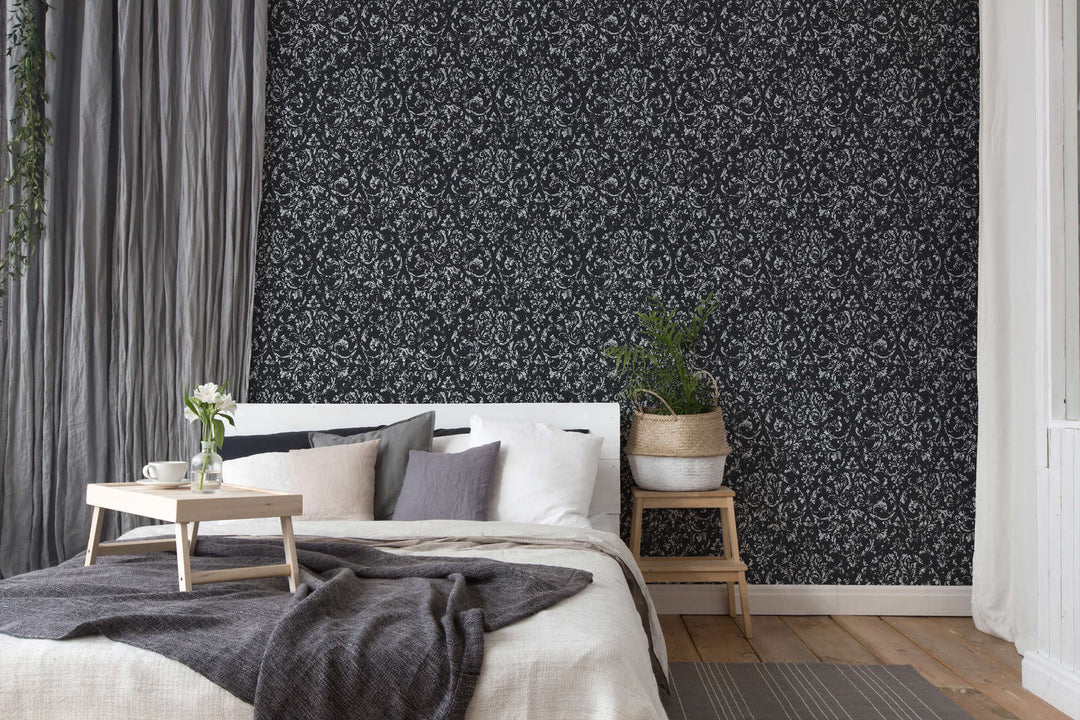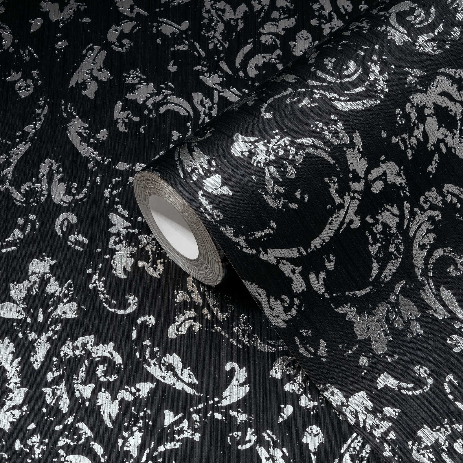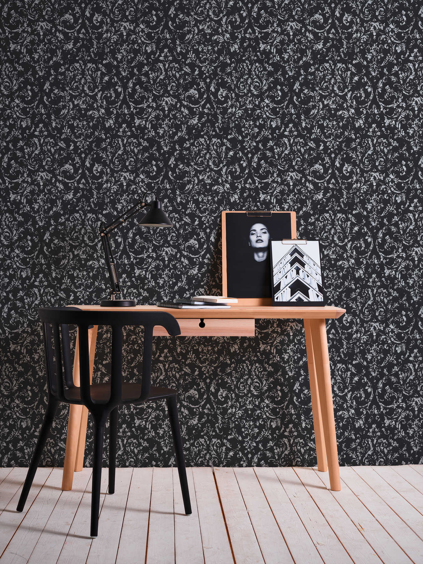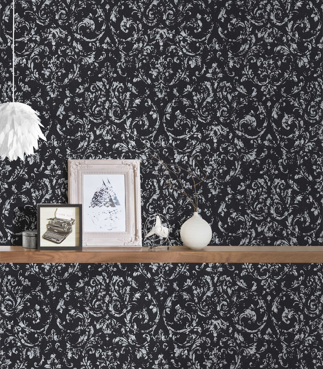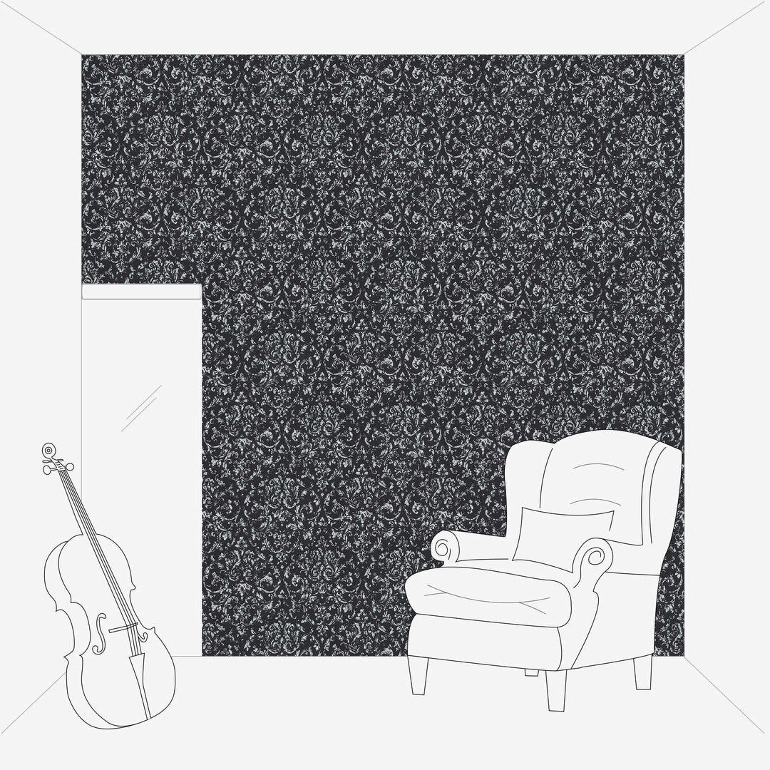 * Tapetes ar ornamentu ar metālisku efektu, melnā, sudrabā - 1126656