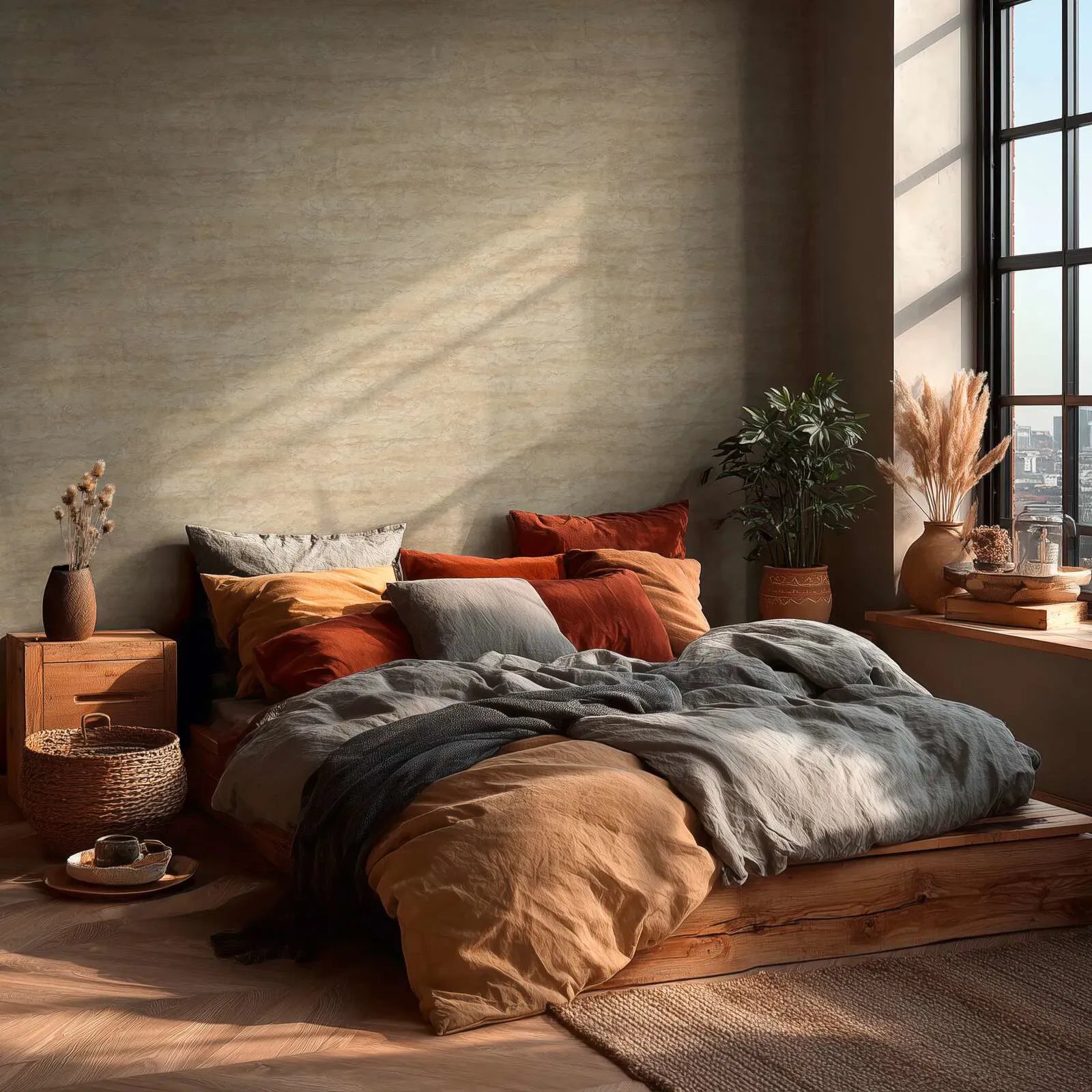 Šo tapetu motīvs atgādina rupji teksturētu dabīgo akmens vai smilšakmens sienu. Virsma izskatās raupja un nevienmērīga, ar smalkām plaisām un vēnām, kas atgādina ģeoloģiskos slāņus. Krāsu gamma raksturojas ar siltām, zemes toņiem, sākot no gaiši smilškrāsas un smilškrāsas toņiem līdz vidējiem, gandrīz okera brūniem toņiem. Smalki toņi un gaišākas virsmas rada dzīvīgu, bet vienlaikus mierīgu un dabisku izskatu. Stils balstās uz rustikālu vai Vidusjūras reģiona ietekmi un telpai piešķir siltu, oriģinālu atmosfēru, kas izstaro mājīgumu un rada patīkamu zemes toni.