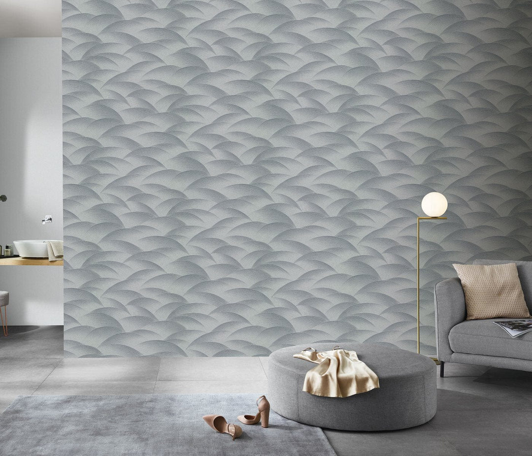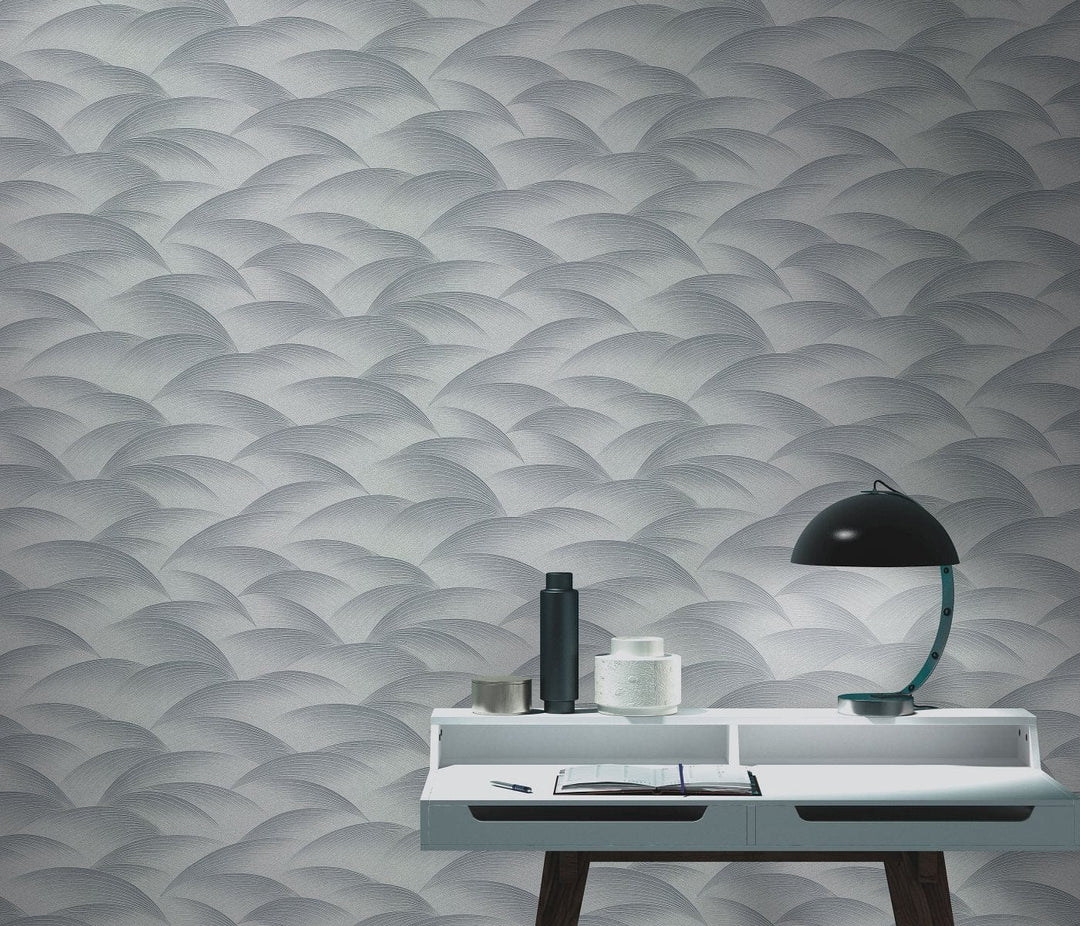 Tapetes ar ģeometrisko rakstu: viļņi sudrabā krāsā, Erismann, 3751655