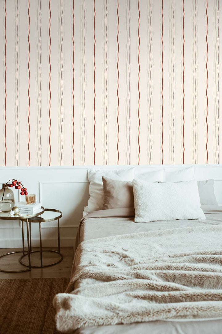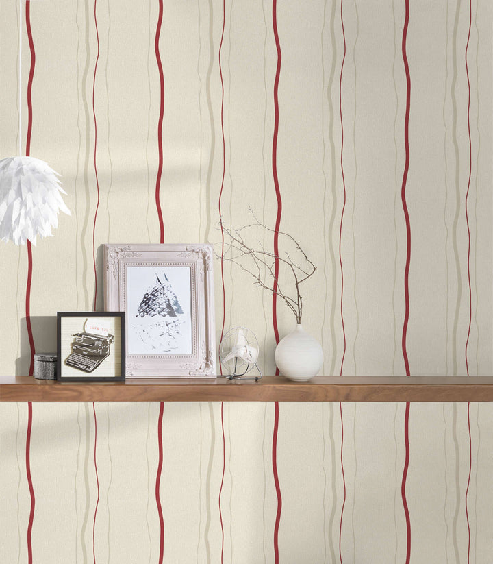 Tapetes ar vertikālām svītrām - krēmkrāsa, sarkana - 3520413