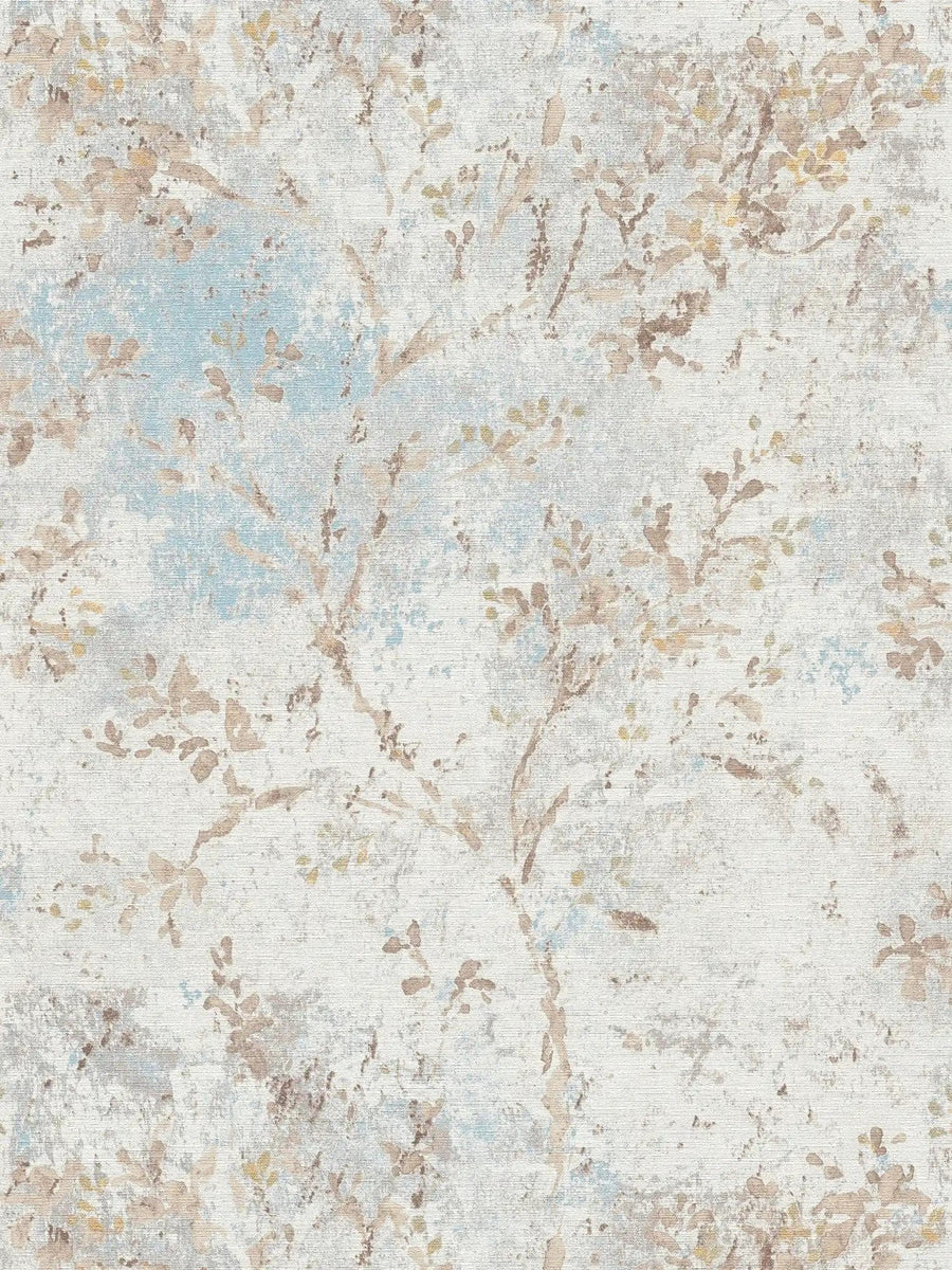Tapetes ar ziedu rakstu akvareļu stilā - pelēka, zila, bēša, 396502 AS Creation