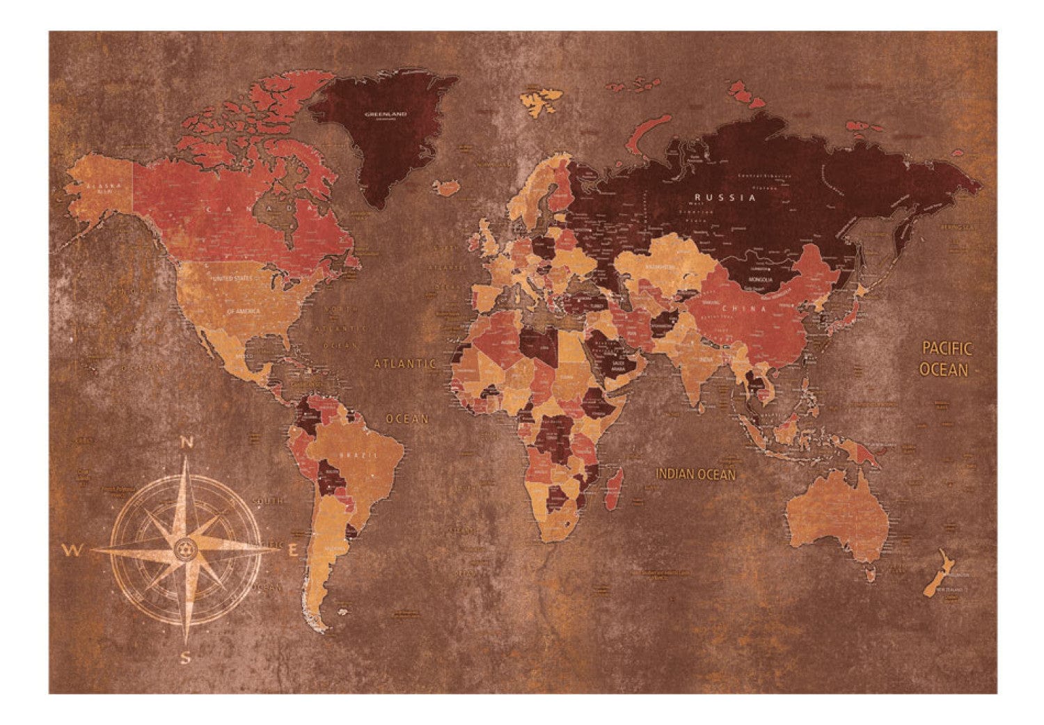 Fototapetes ar kontinentiem uz neviendabīga fona ar kompasu stūrī, 91660