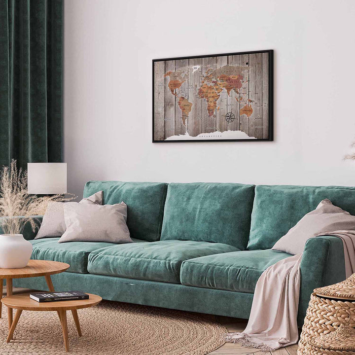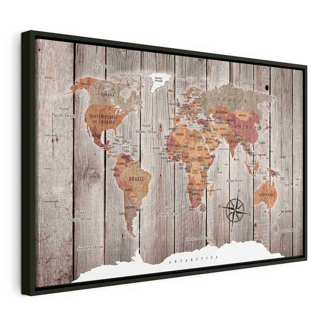 Glezna melnā koka rāmī - Pasaules karte: Koka stāsti