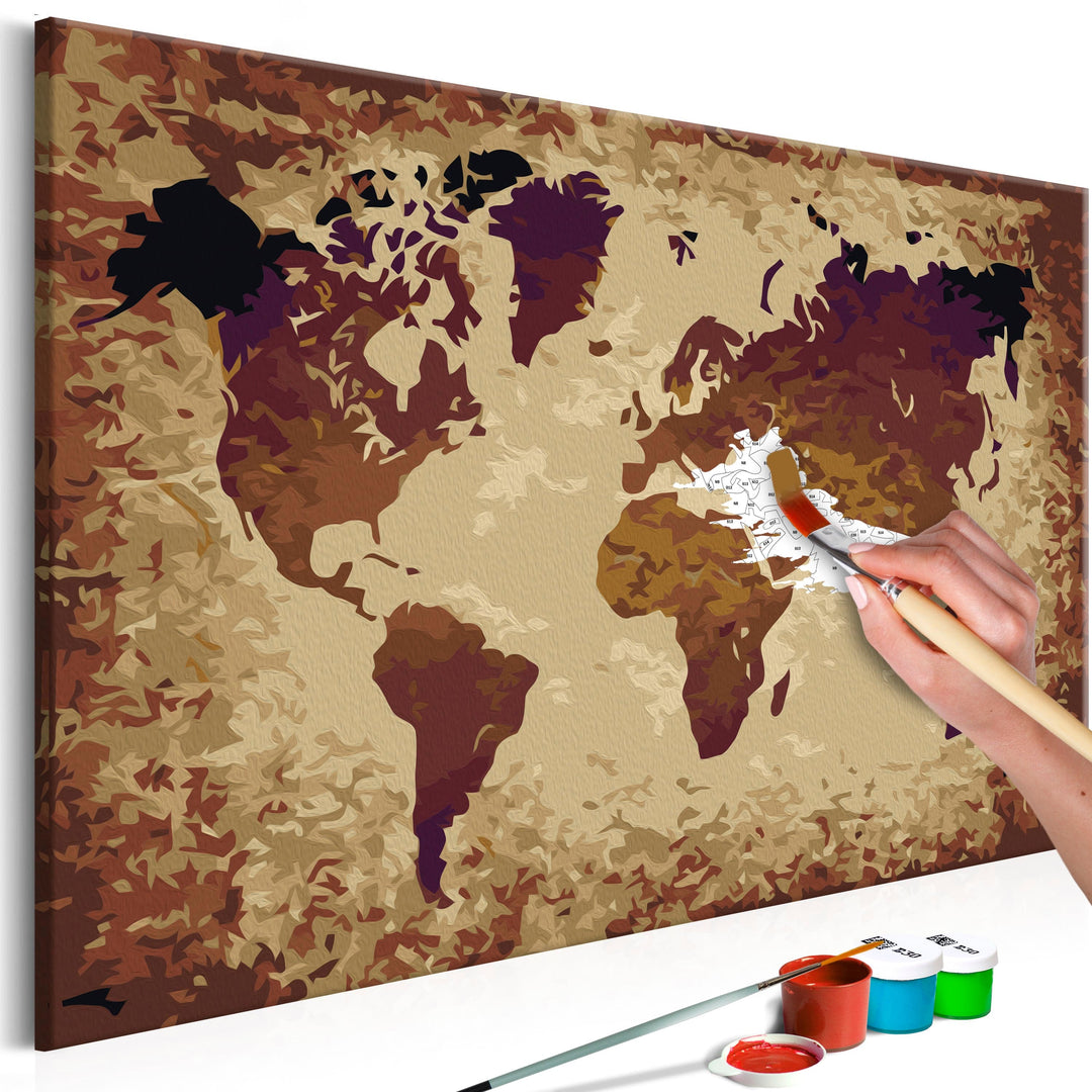 Kanva uz audekla "izkrāso pēc cipariem" - Pasaules karte (brūnas krāsas) 50x40 cm