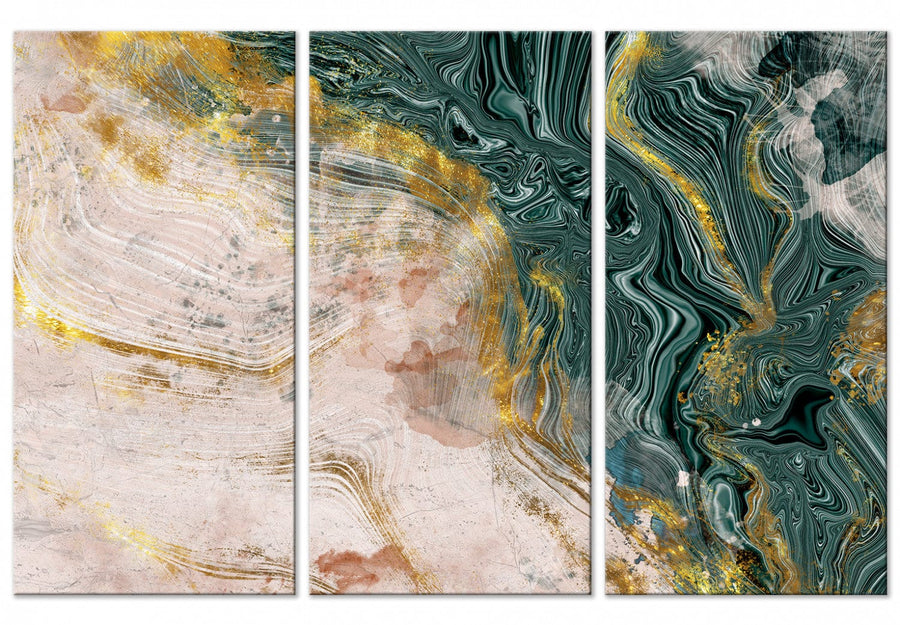 Glezna ar abstrakciju zeltā un malahītā krāsā (3 daļas) G-ART.